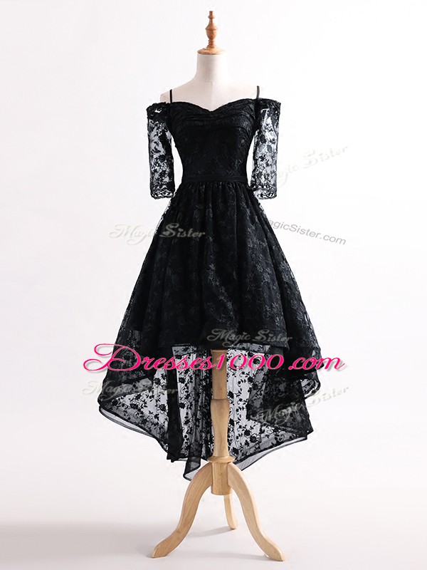 Pretty Tulle Straps Half Sleeves Lace Up Lace Prom Dress in Black