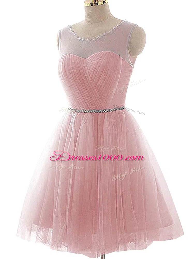 Mini Length Lace Up Pink for Prom and Party and Beach with Beading and Ruching