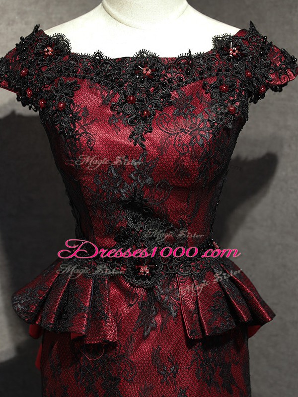Custom Designed Red And Black Sleeveless Lace Lace Up Evening Wear for Prom and Military Ball