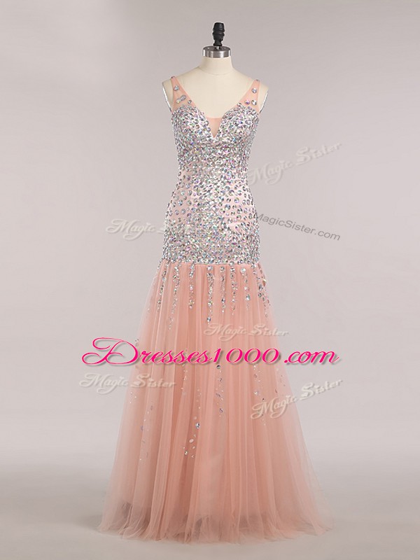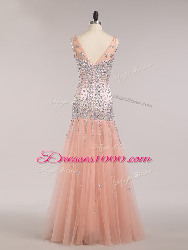 Dazzling V-neck Sleeveless Zipper Pageant Dresses Peach Tulle