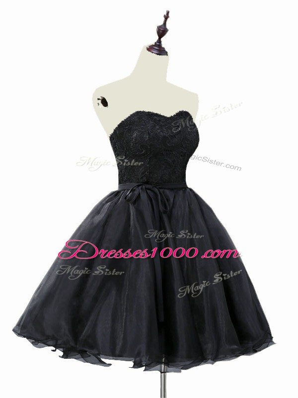 Hot Sale Black Sweetheart Lace Up Lace and Sashes ribbons Homecoming Dress Sleeveless