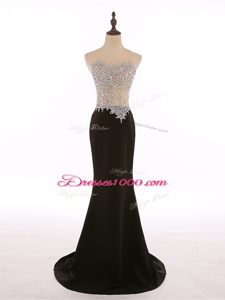 Shining Black Chiffon Zipper Scoop Sleeveless Homecoming Dress Brush Train Beading