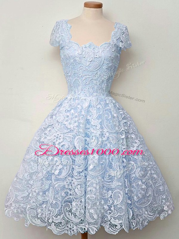Lovely Knee Length A-line Cap Sleeves Light Blue Vestidos de Damas Lace Up