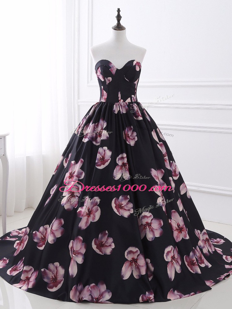 New Arrival Sweetheart Sleeveless Prom Dress Brush Train Ruching Multi-color Printed
