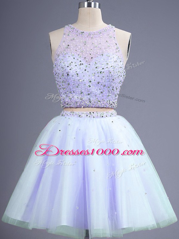 New Style Lavender Sleeveless Knee Length Beading Lace Up Dama Dress for Quinceanera