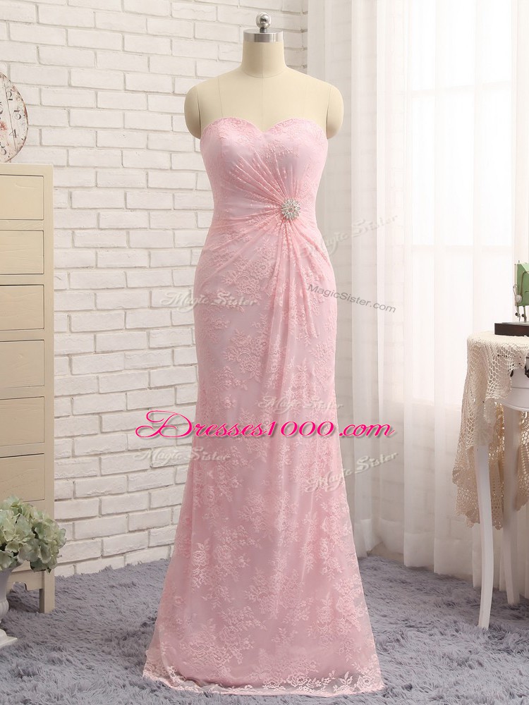 Exceptional Sleeveless Lace Floor Length Zipper Mother of Bride Dresses in Baby Pink with Beading and Lace and Appliques