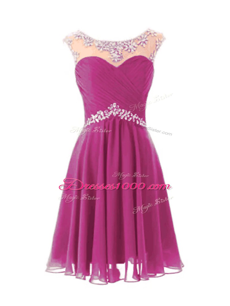Fantastic Scoop Cap Sleeves Prom Homecoming Dress Knee Length Beading Fuchsia Chiffon