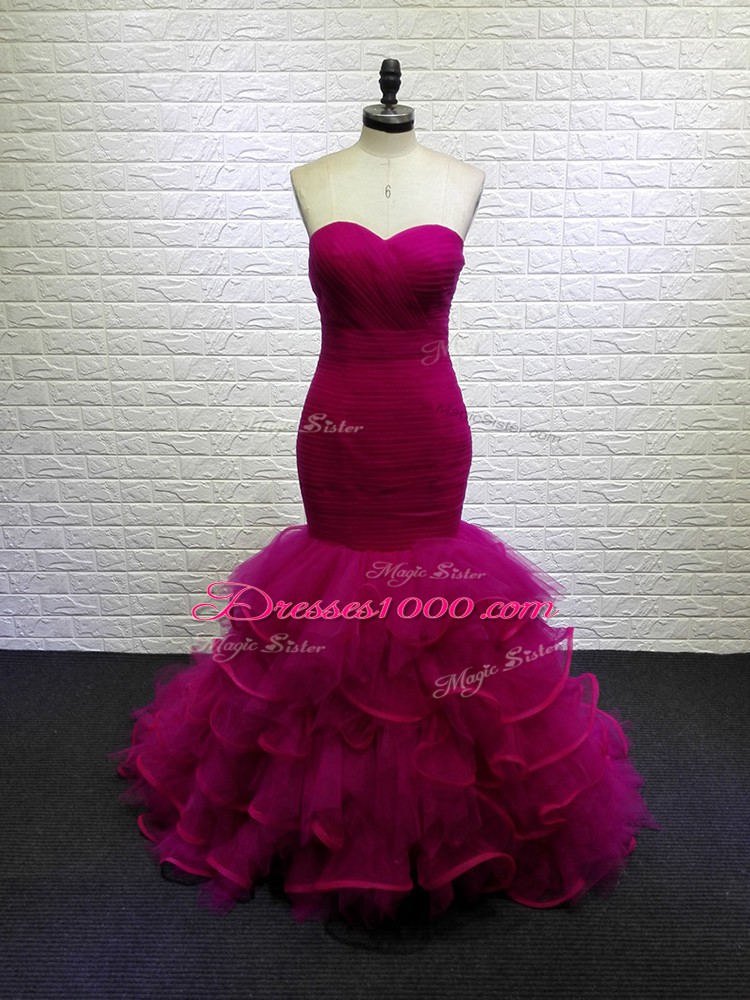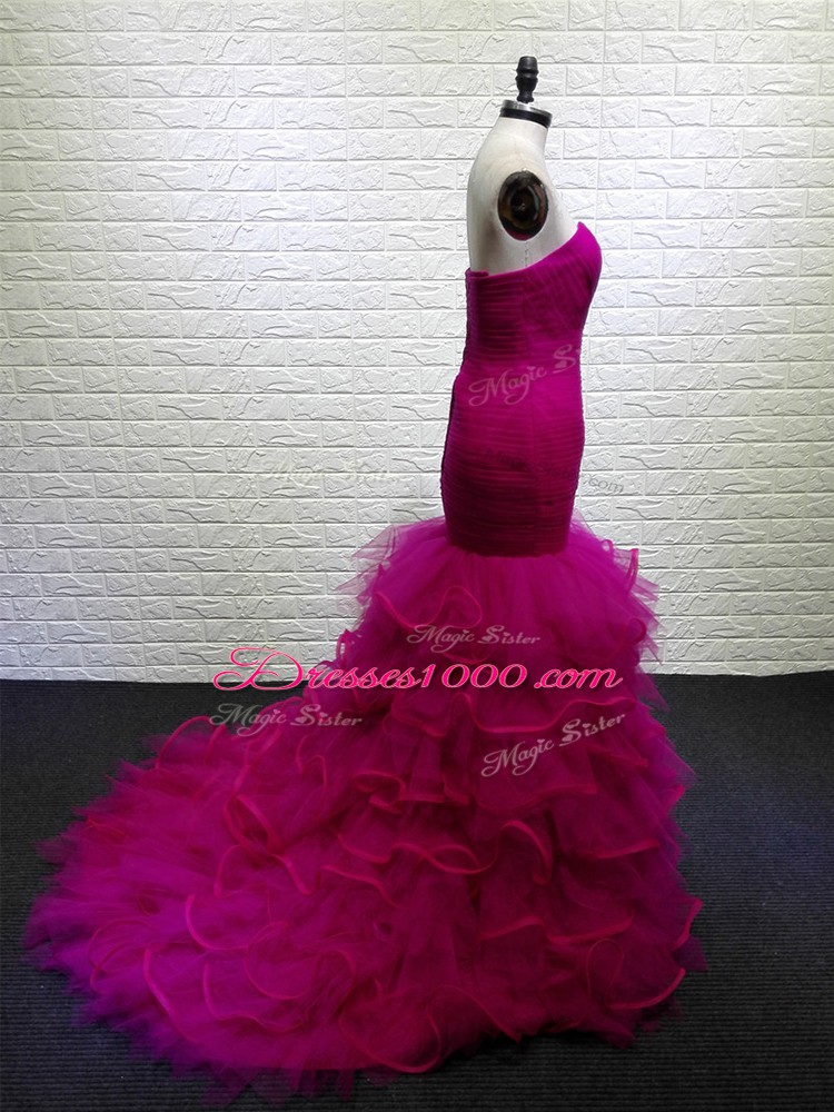 Fabulous Mermaid Sleeveless Fuchsia Pageant Dress Wholesale Brush Train Lace Up