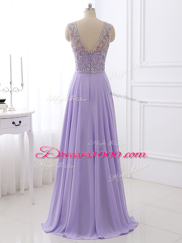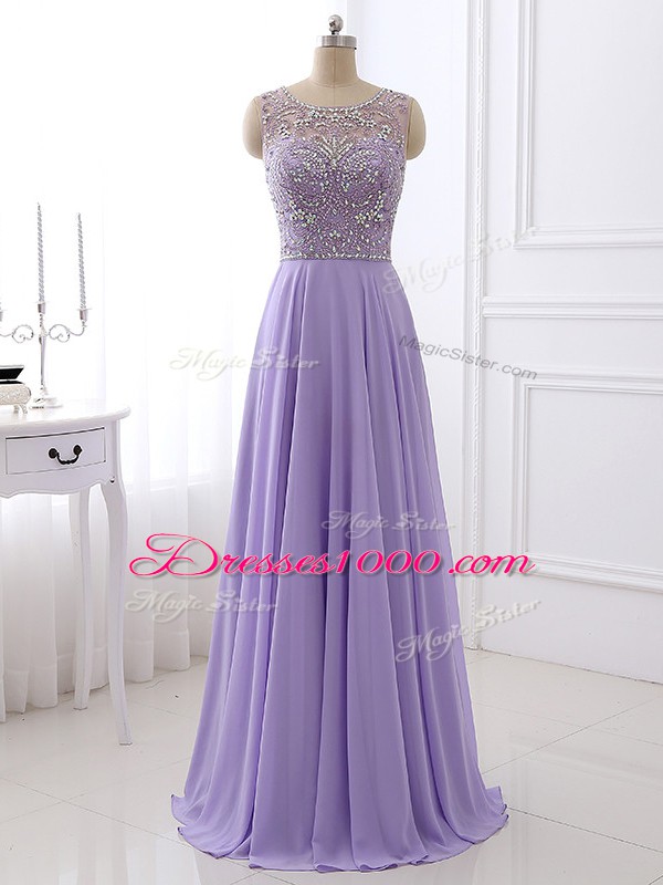 Scoop Sleeveless Zipper Juniors Evening Dress Lavender Chiffon