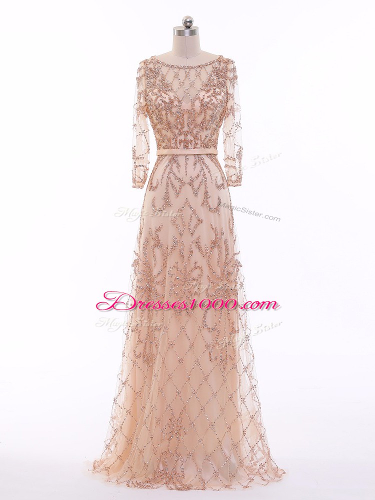 Gorgeous Empire Long Sleeves Peach Evening Dress Zipper