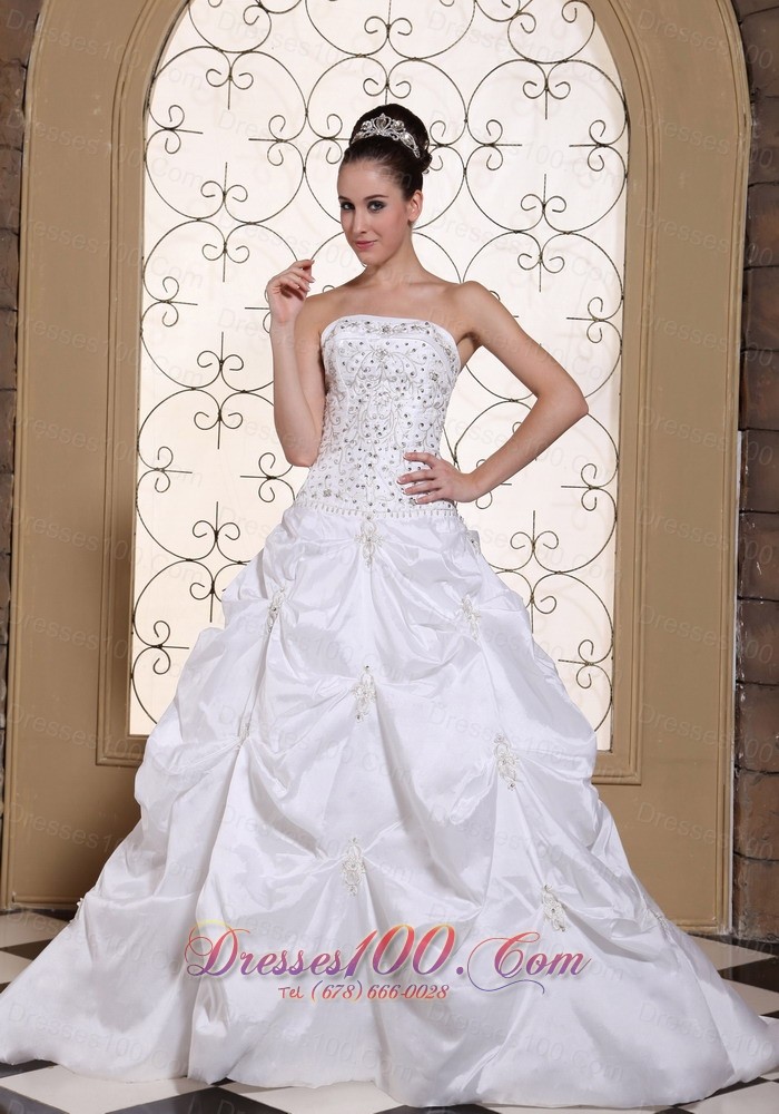 Pick-ups Embroidery Taffeta Strapless Wedding Gown