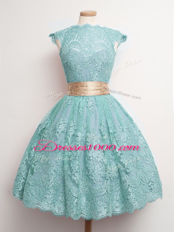 Aqua Blue Cap Sleeves Lace Lace Up Quinceanera Court Dresses for Prom and Party and Wedding Party