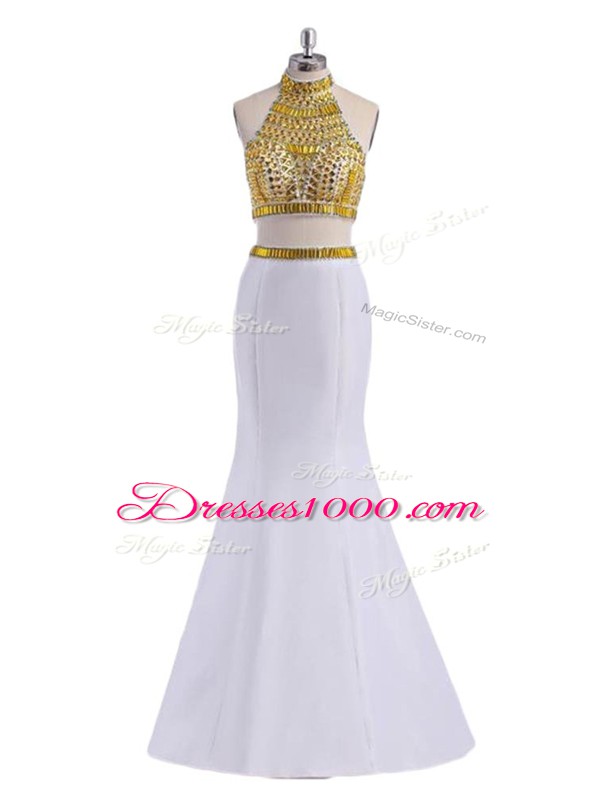 On Sale White Halter Top Neckline Beading Dress for Prom Sleeveless Lace Up