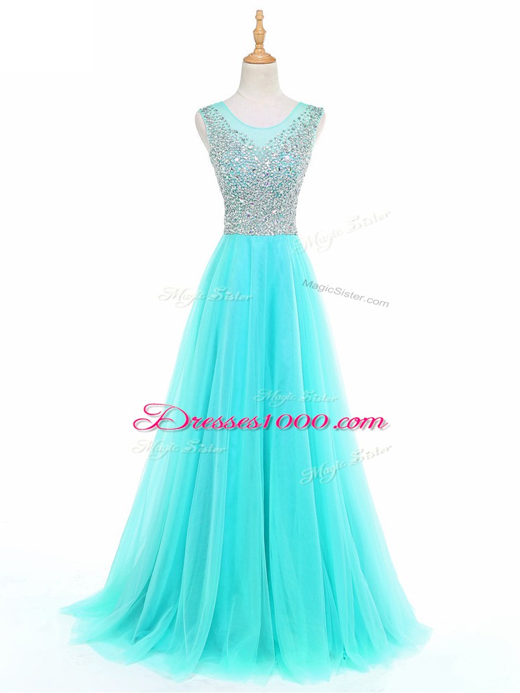Sumptuous Aqua Blue Sleeveless Tulle Side Zipper for Prom and Party and Military Ball and Sweet 16