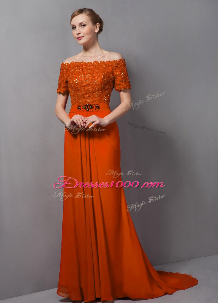 Short Sleeves Sweep Train Zipper Lace Mother of Bride Dresses