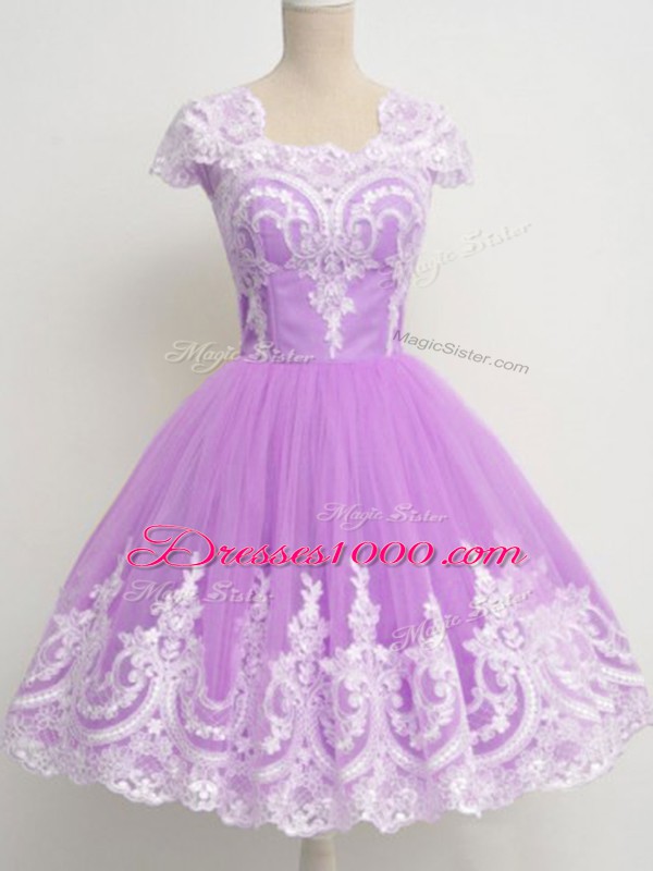 Smart Lavender Zipper Square Lace Dama Dress for Quinceanera Tulle 3 4 Length Sleeve
