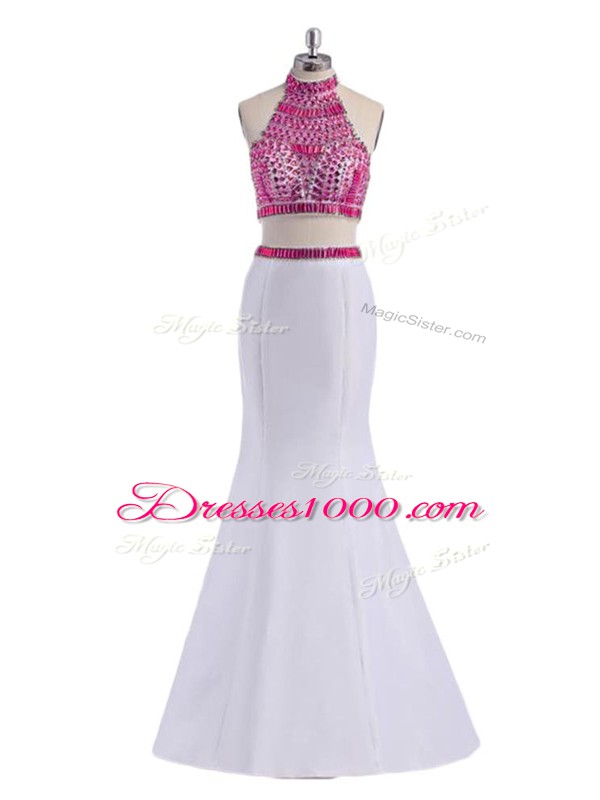 Best Floor Length White Pageant Dress for Womens Halter Top Sleeveless Criss Cross