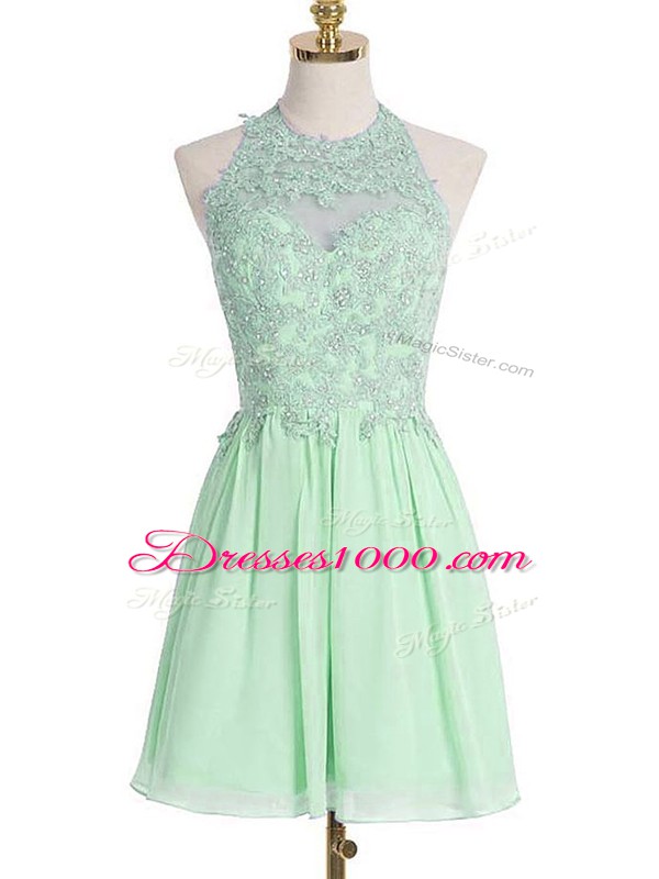 Customized Sleeveless Lace Up Knee Length Appliques Vestidos de Damas