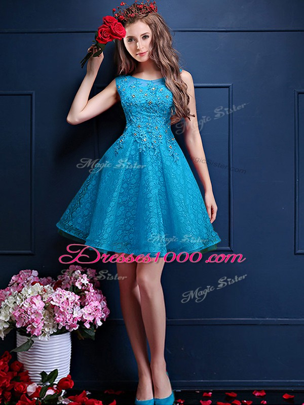 Chic Knee Length Teal Dama Dress Tulle Sleeveless Beading and Lace