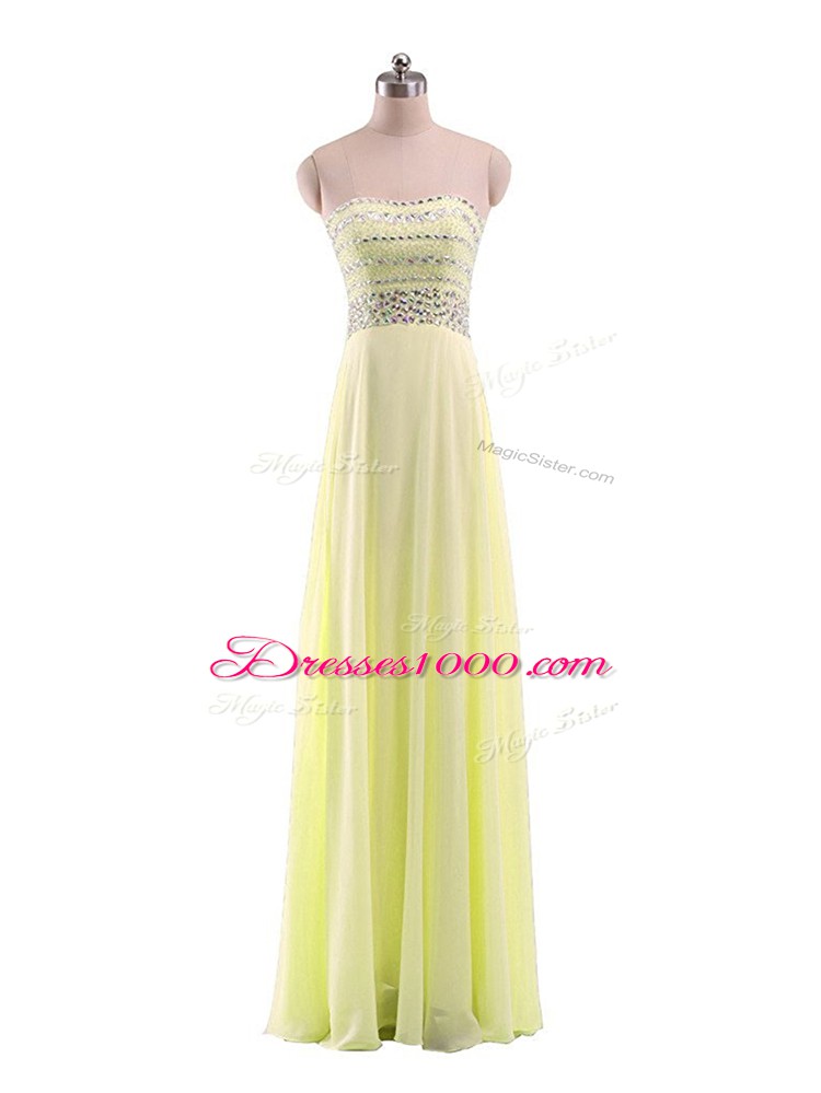 Yellow Evening Dress Prom and Military Ball with Beading Strapless Sleeveless Zipper