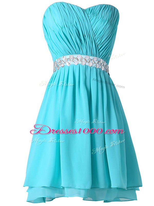 Glittering Aqua Blue Sleeveless Chiffon Lace Up Homecoming Dresses for Prom and Party and Sweet 16