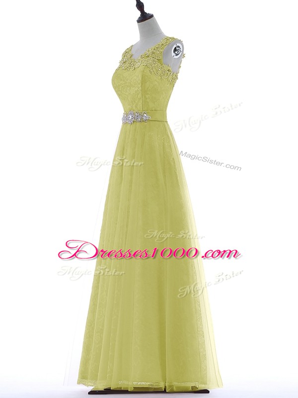 Tulle Sleeveless Floor Length Juniors Evening Dress and Beading and Lace and Appliques