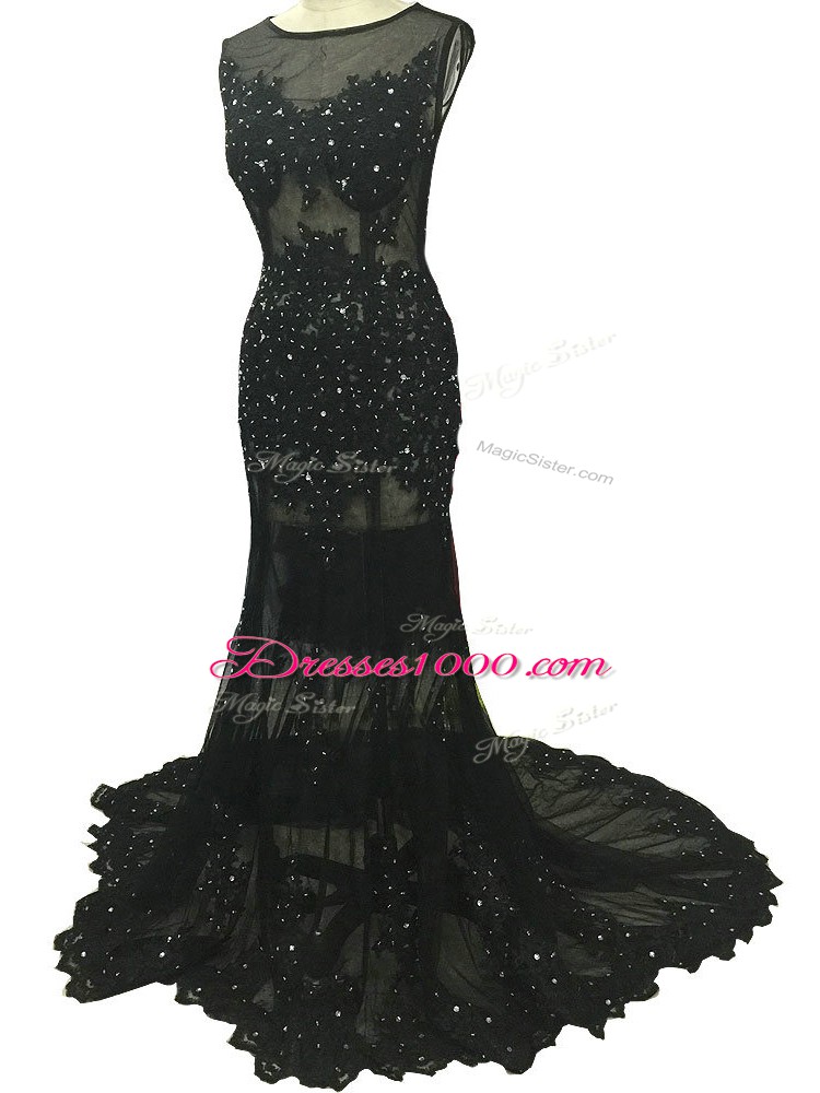 Perfect Beading and Lace and Appliques Mother of the Bride Dress Black Side Zipper Sleeveless Brush Train