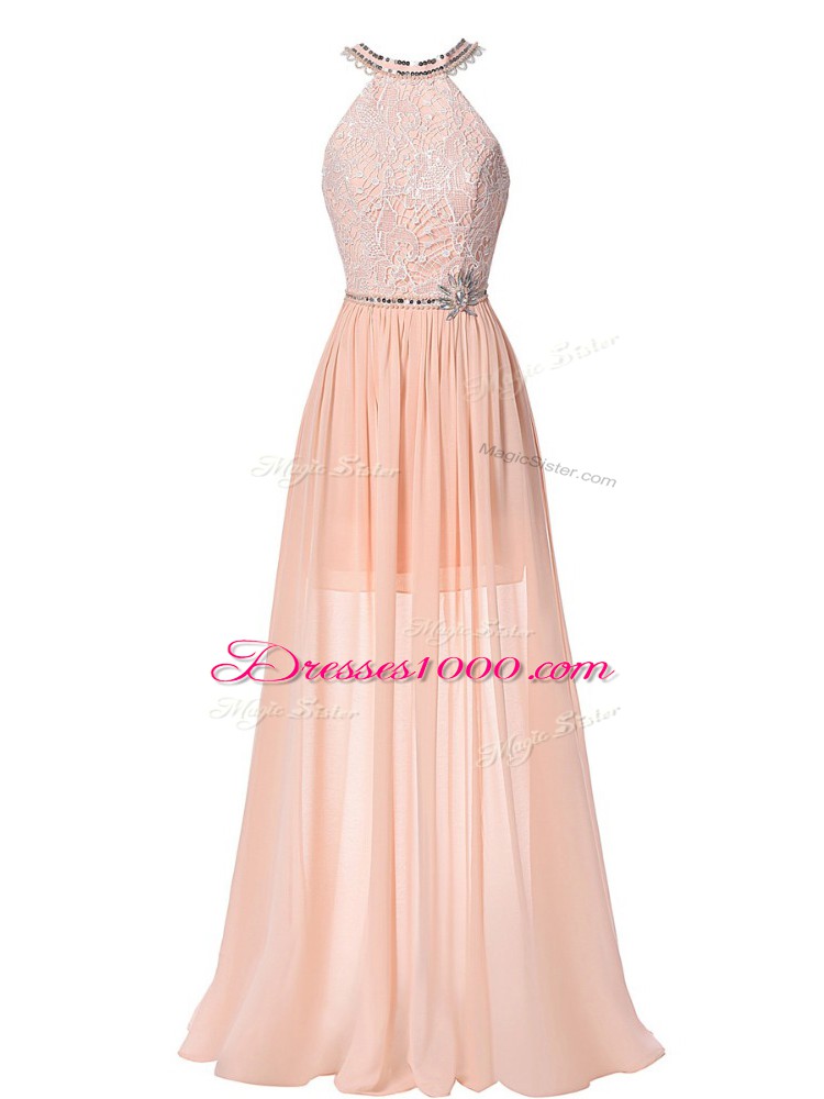Colorful Peach Formal Evening Gowns Prom and Military Ball and Beach with Beading Halter Top Sleeveless Backless