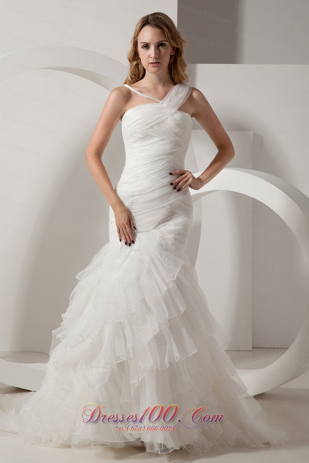When it's time for your wedding, you want the most amazing dress you can find?Cthis pure one can help makes your big day special! This white wedding dress has irregular straps and very refined pleated boice. The floor length skirt is made of layers of gathered tulle, which has an amazing shape and creates a beautiful silhouette. A stunning train extends from the back of the dress and a zipper up closure complete the design.