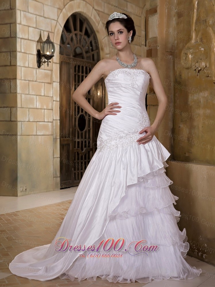 Strapless Taffeta and Organza Appliques Bridal Dresses