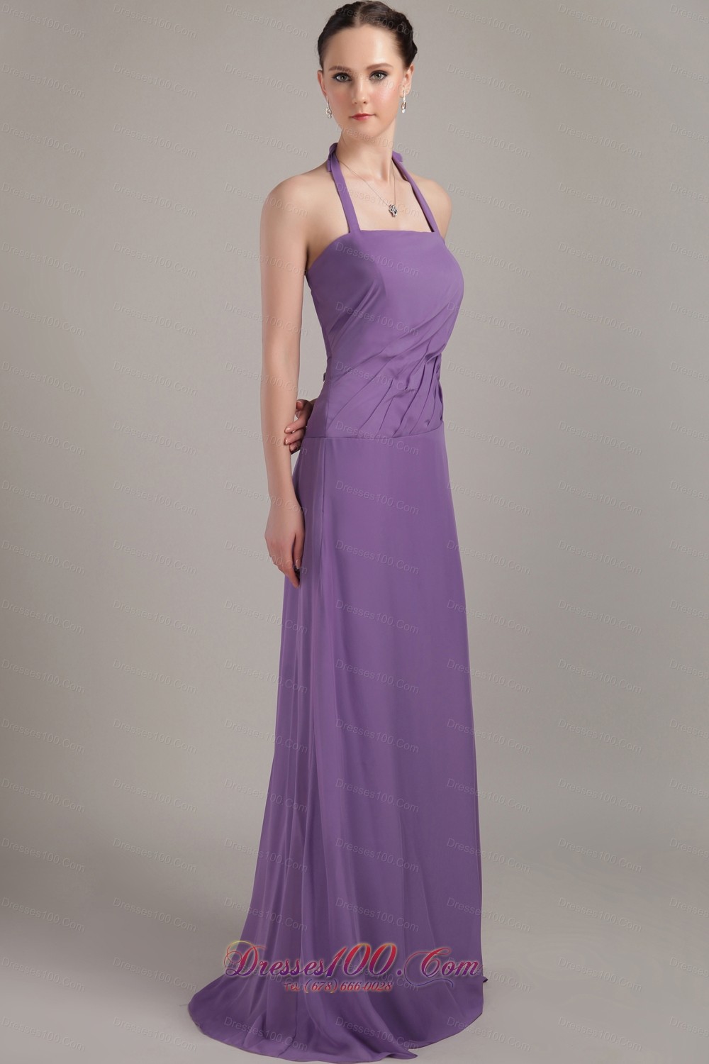 Lavender Halter Bridesmaid Dress Chiffon Ruching