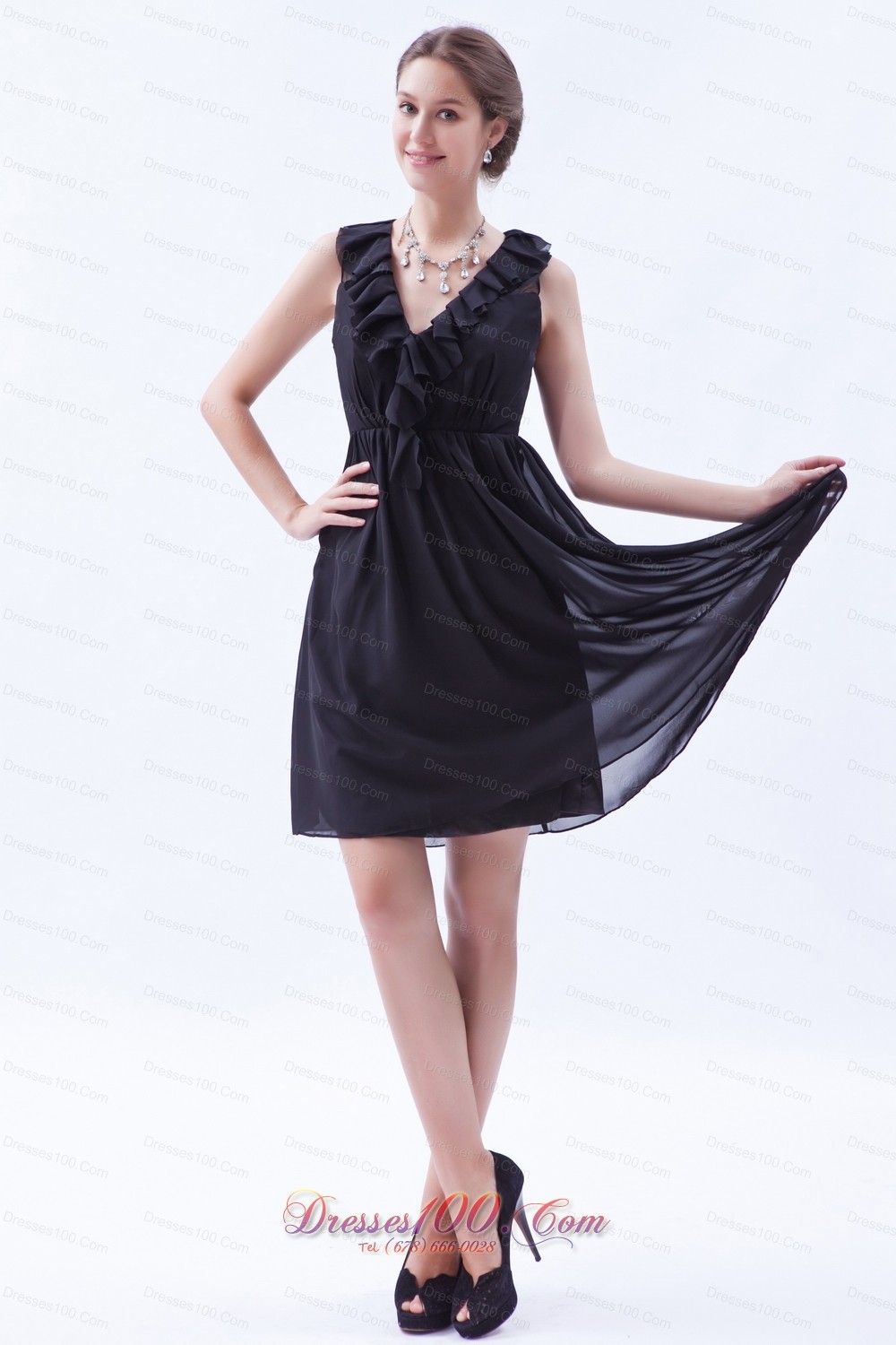 This short dress is simple yet elegant. The bodice has a V-neckline with draped floucing at the edge. A stunning short dress in black color featuring a empire waist with a bow in the back. The soft chiffon material makes the skirt fitted and comfortable, flowy and airy. It moves nicely and elegantly when you walk, cascading to a lovely, liquid-fit silhouette.