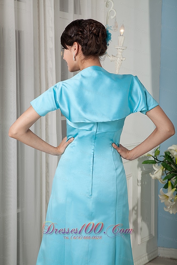 Aqua Blue Formal Gowns for Bridesmaids with Jacket