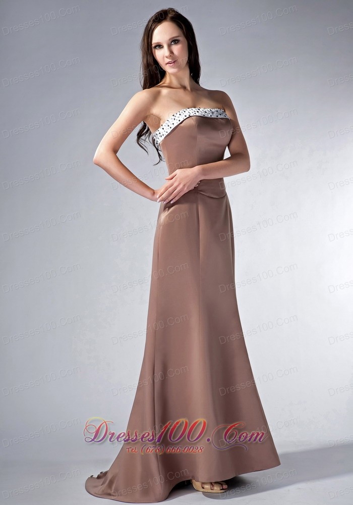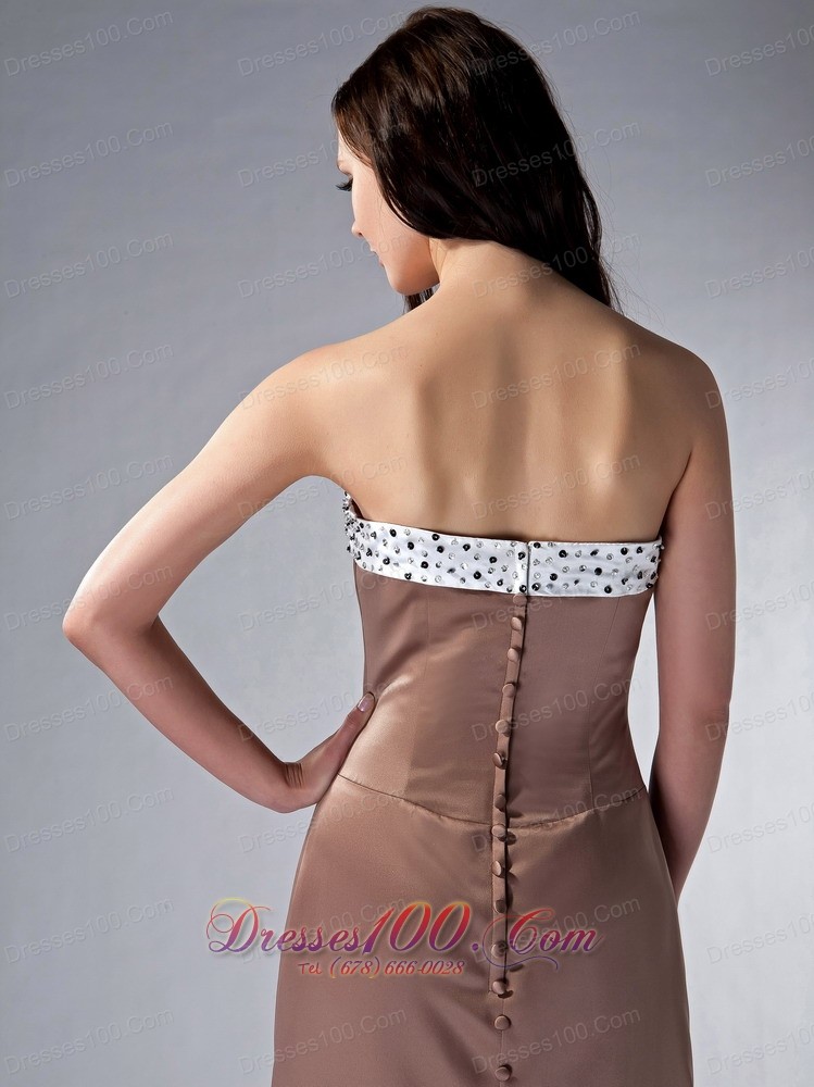 Beaded Trimmed Coffee Brown Bridesmaid Dress Button Back