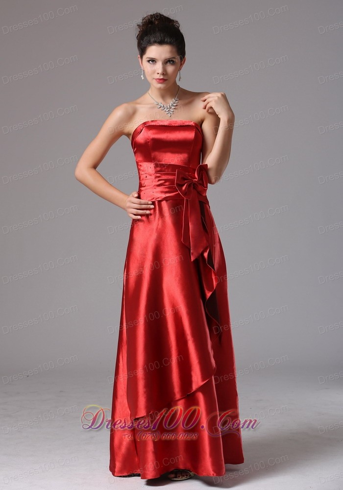 Layer Wine Red Column Bridesmaid Dress With Bows