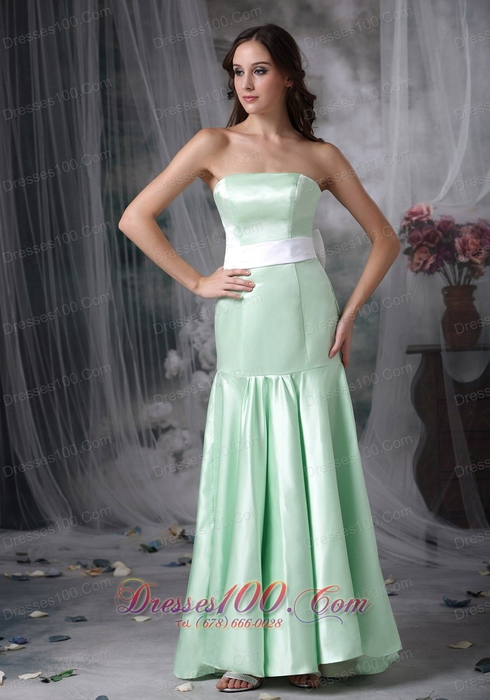 Apple Green Formal Evening Dress Column Brush Train Sash