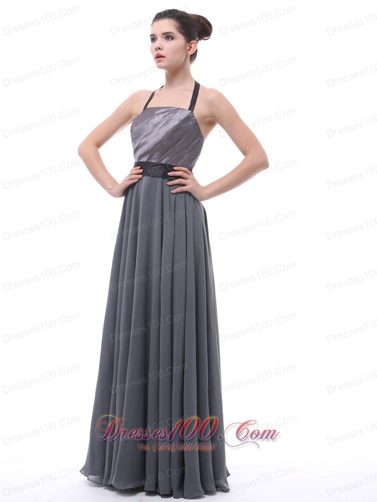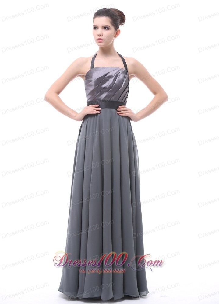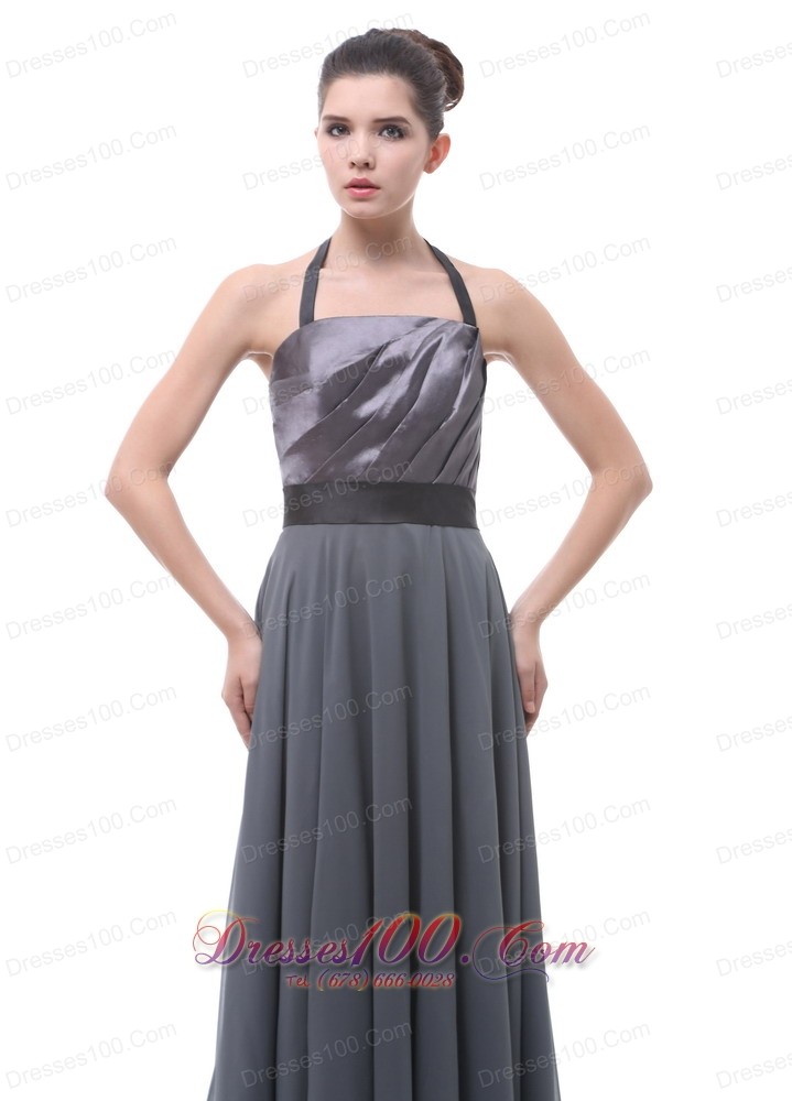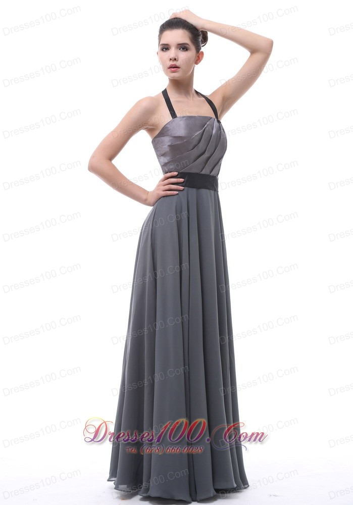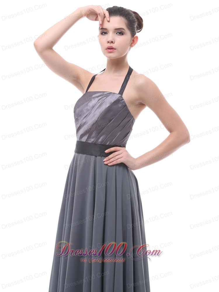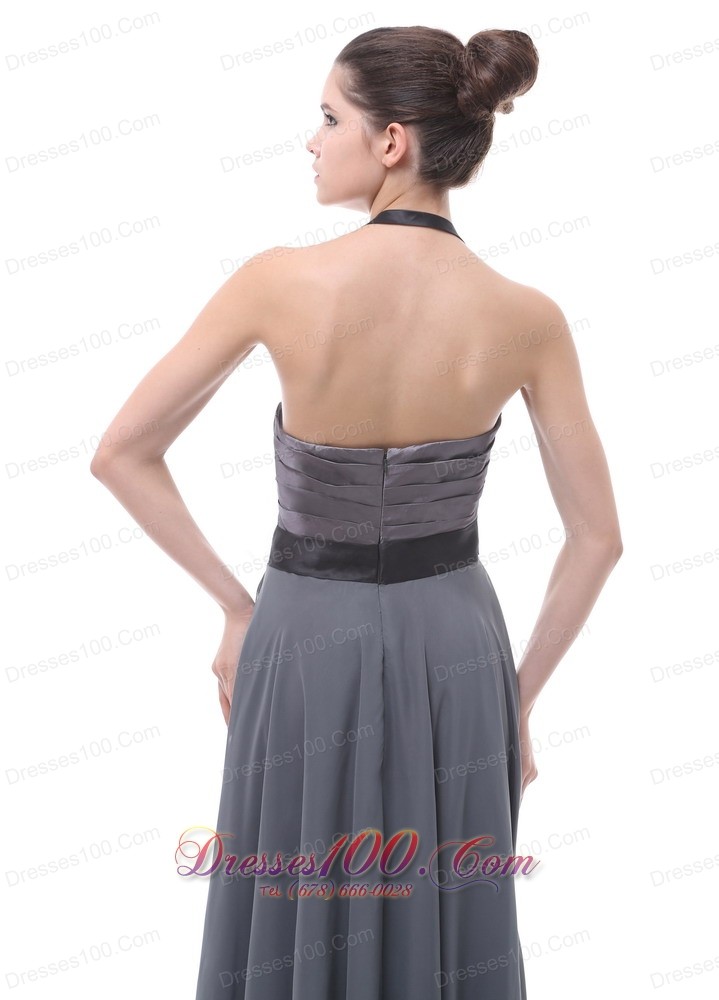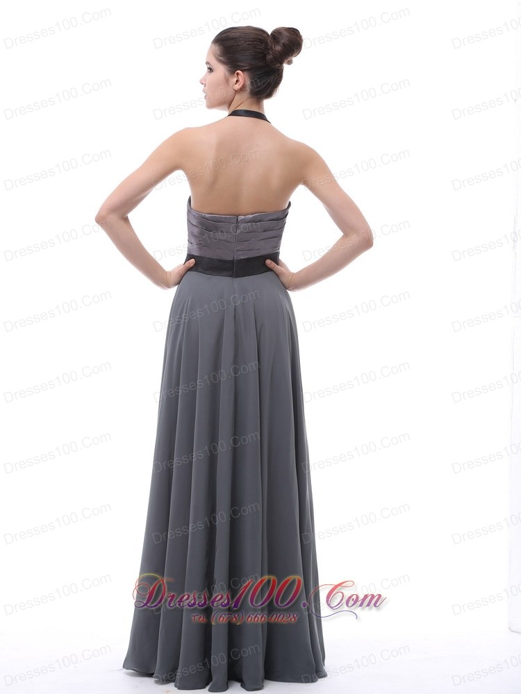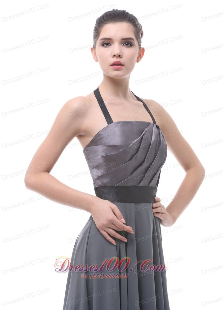Halter Dark Grey Belt Bridesmaid Dress Ruffles 2013