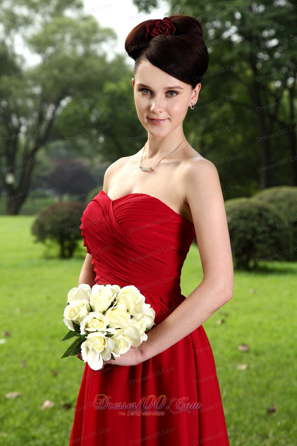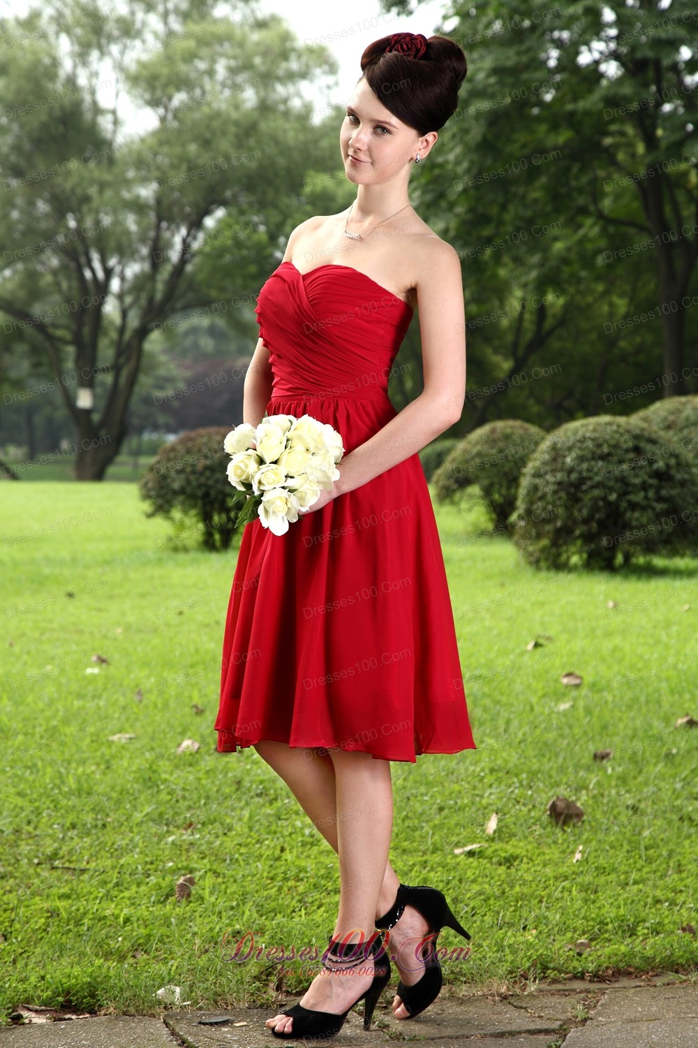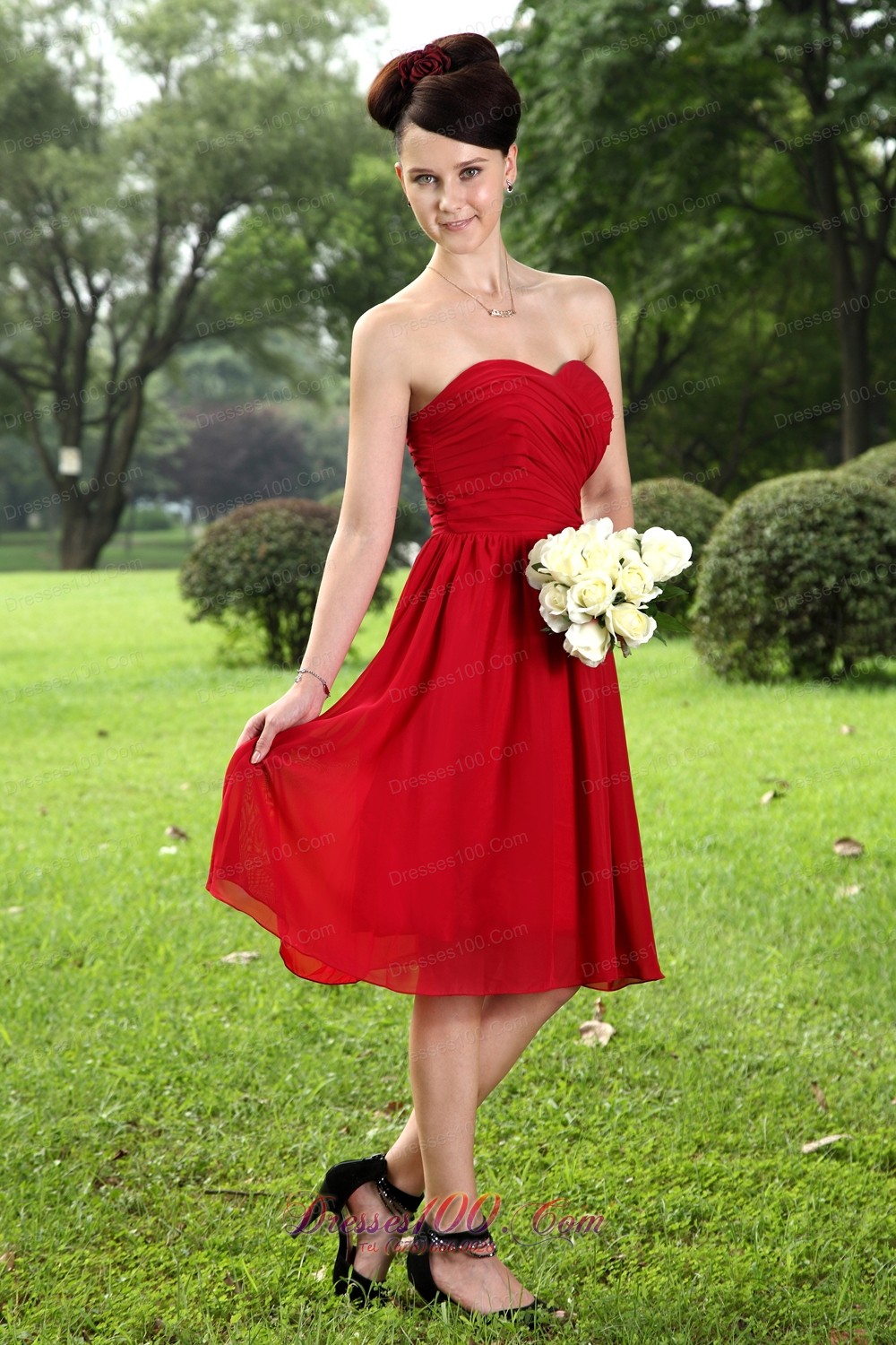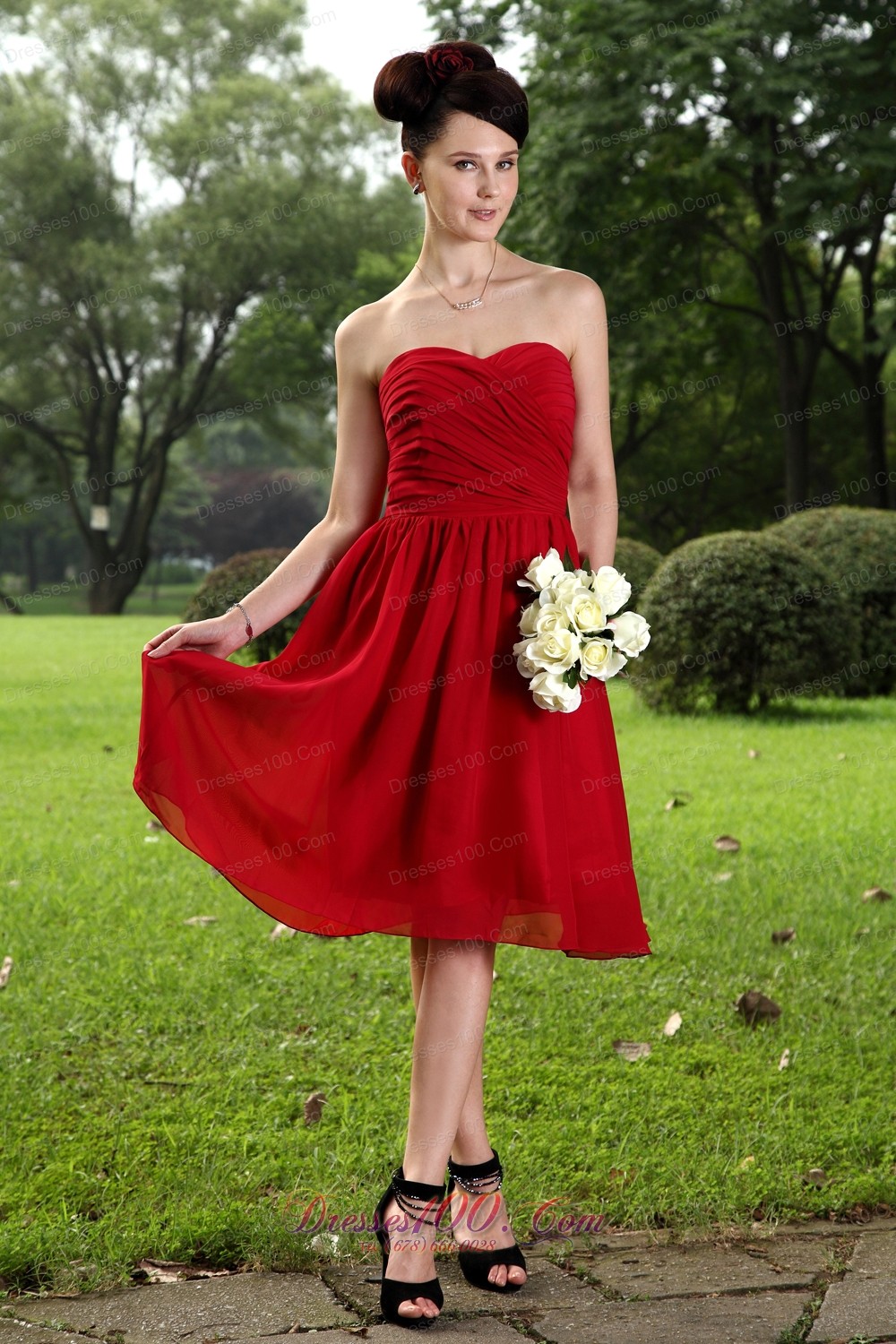 Sweetheart Knee-length Burgundy Bridesmaid Dress Empire