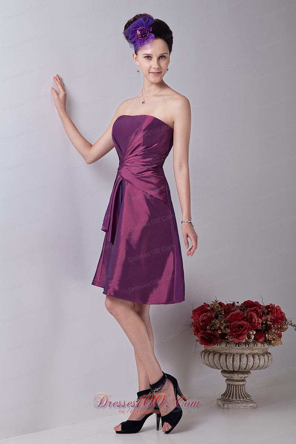 Twist Wrapped Violet Red Cocktail Dress Strapless