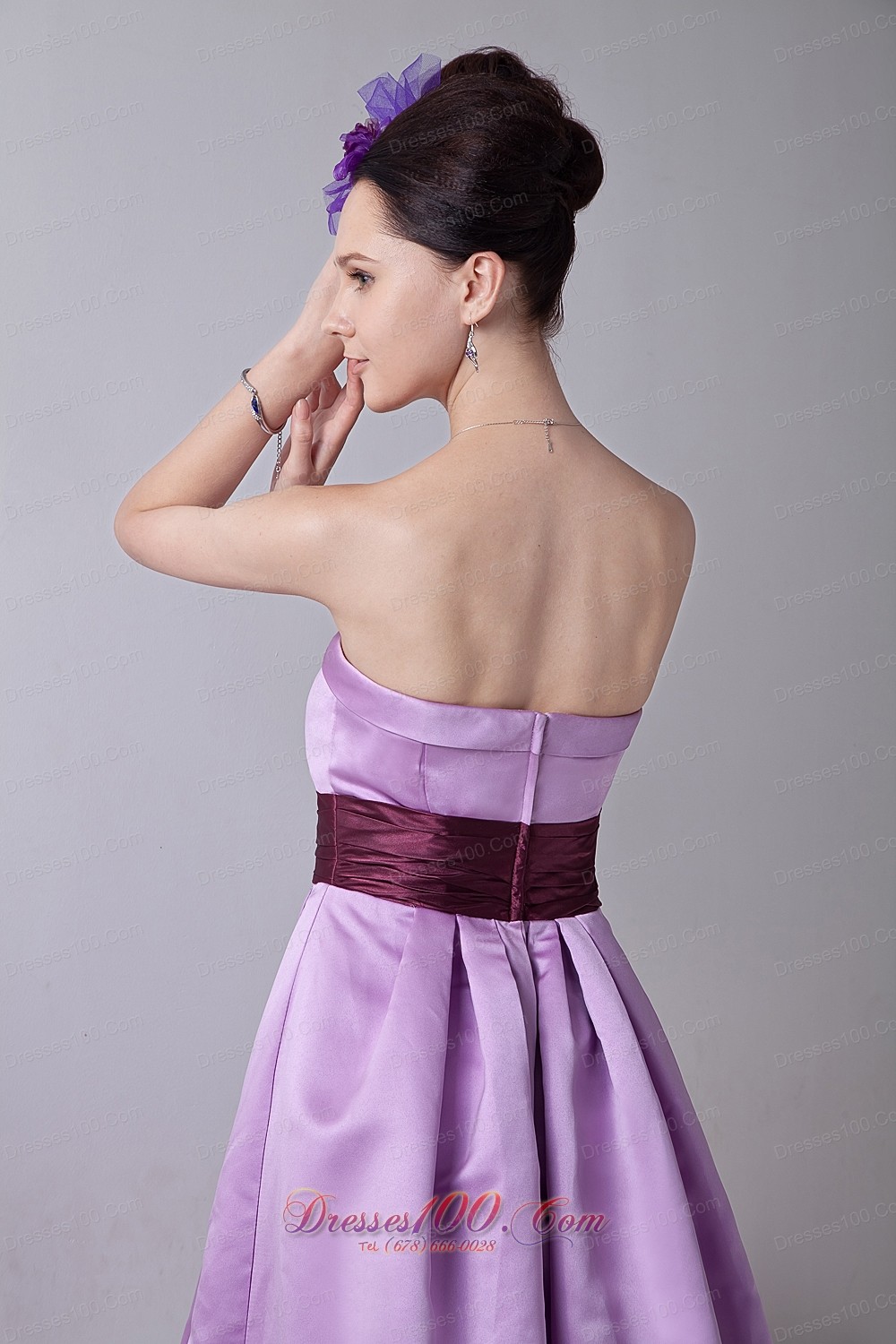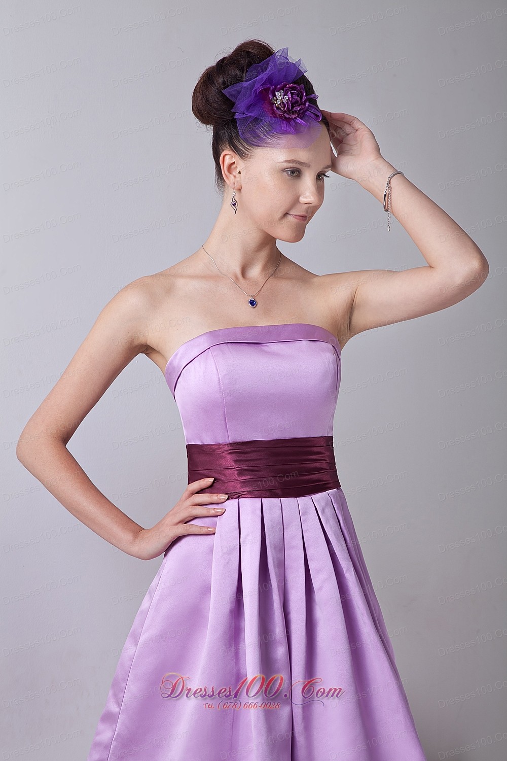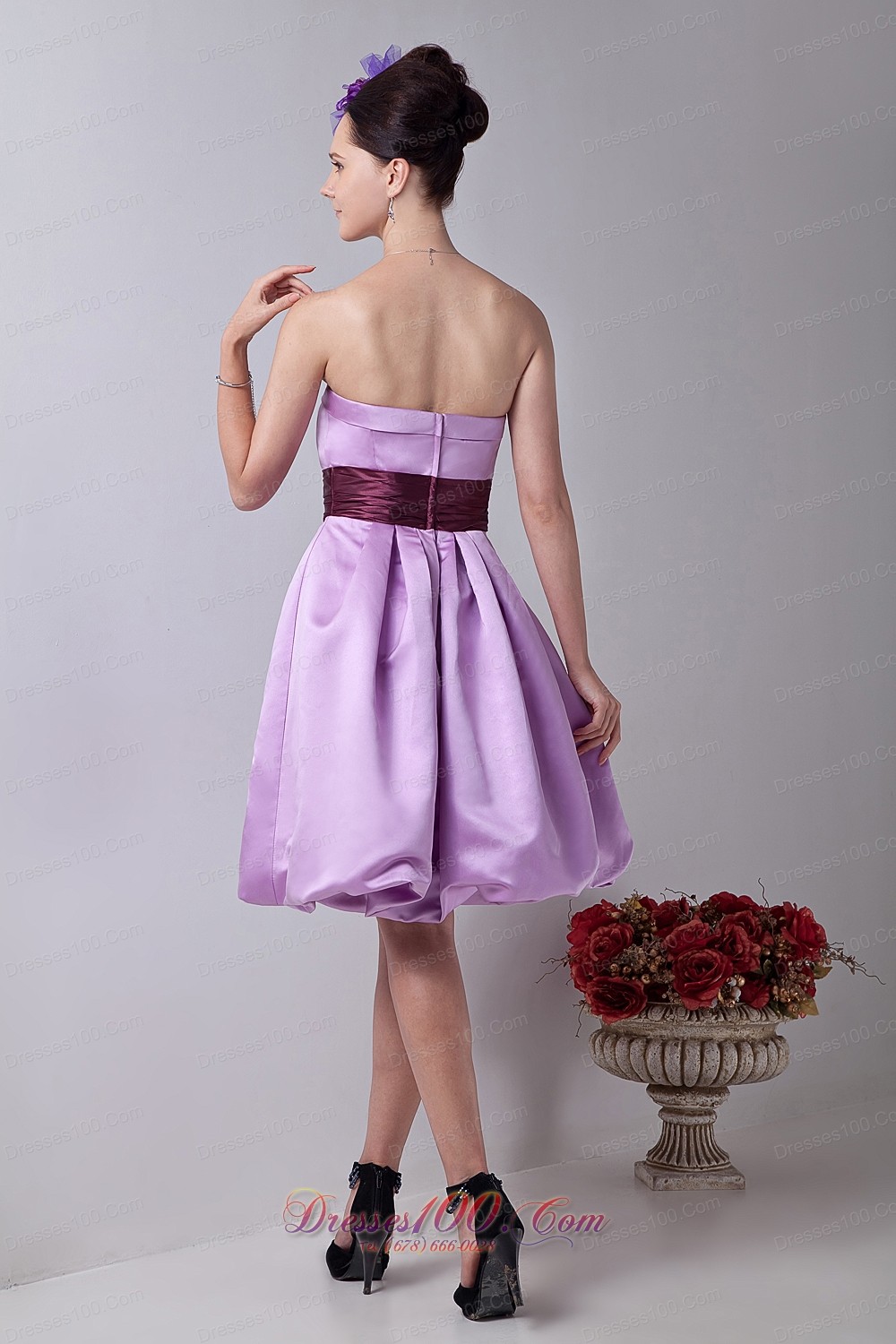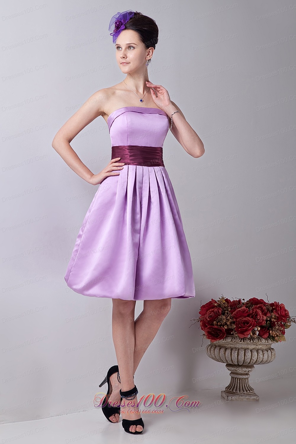 Sash Lilac Strapless Prom Homecoming Dress Knee-length
