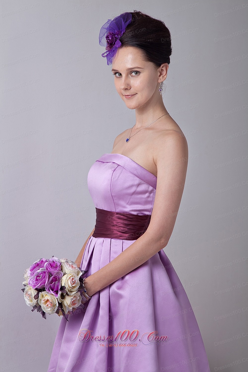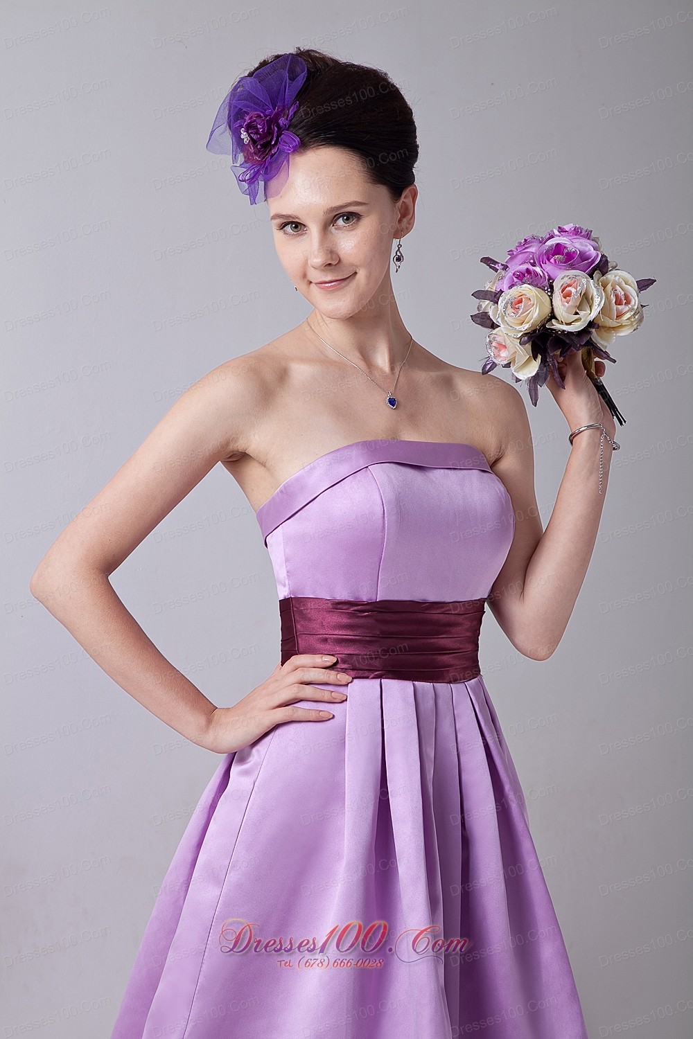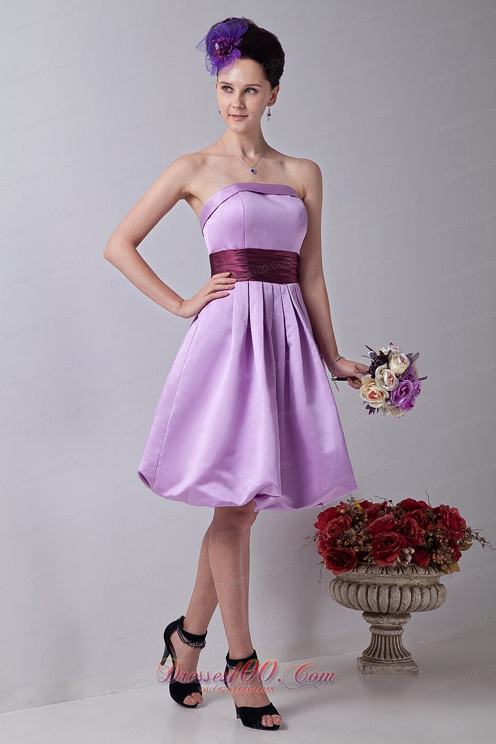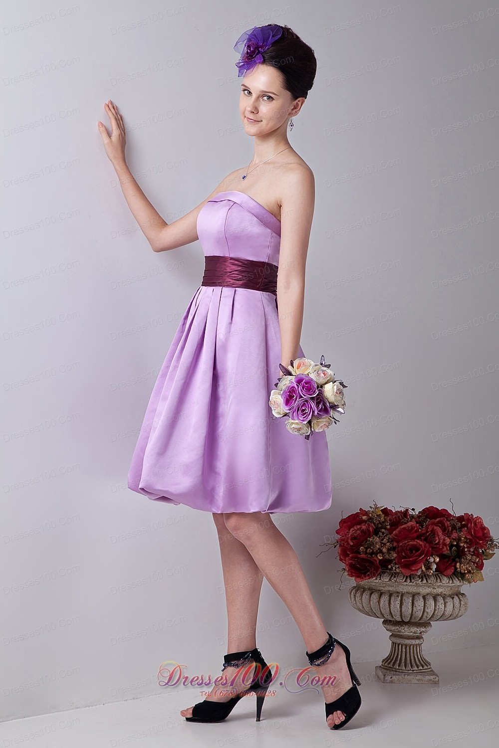 Sash Lilac Strapless Prom Homecoming Dress Knee-length