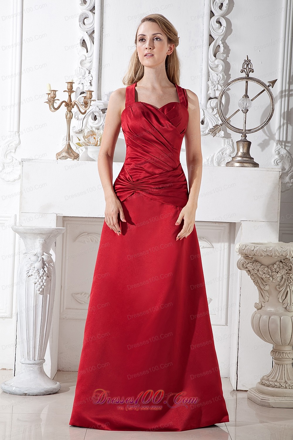 Halter Wine Red Ruching Prom Formal Wears Wrapped