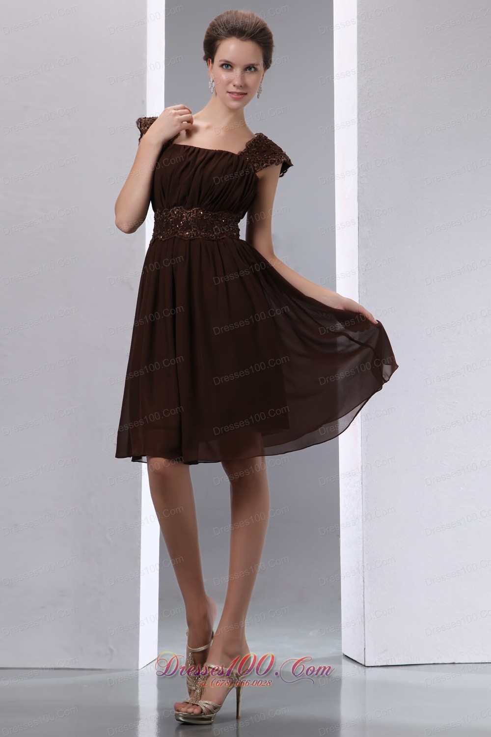 Saddle Brown Square Mother Of The Bride Dress Knee-length