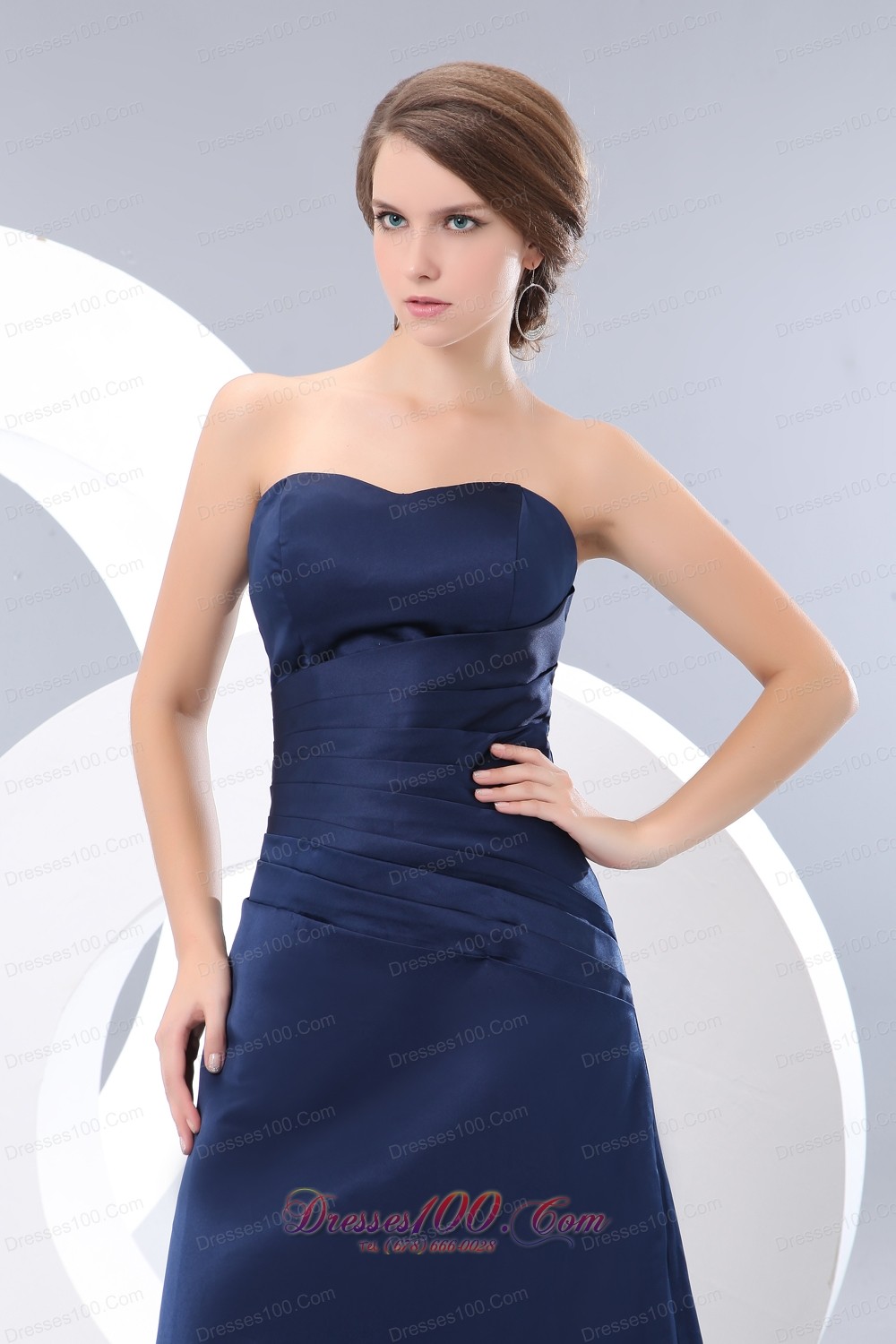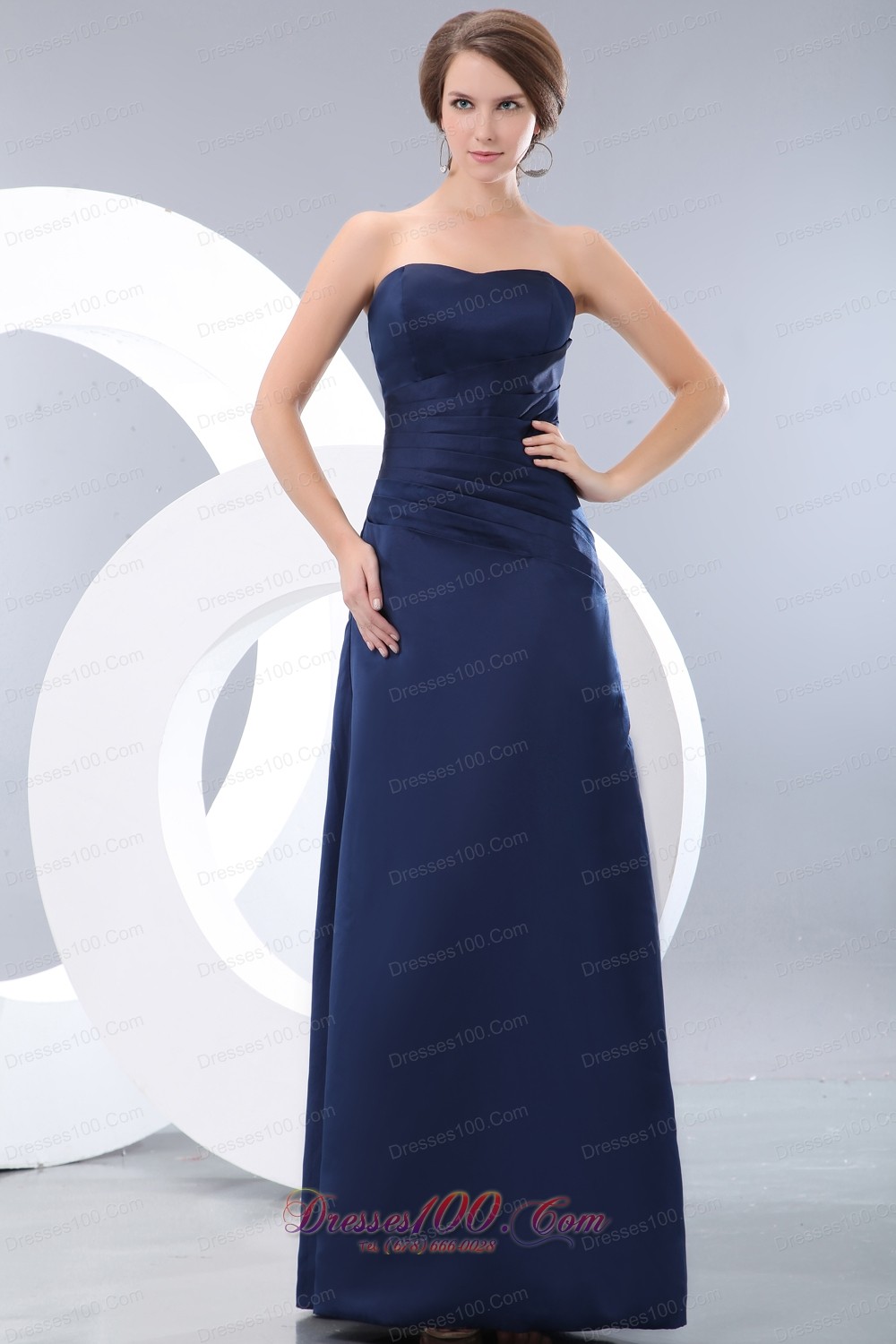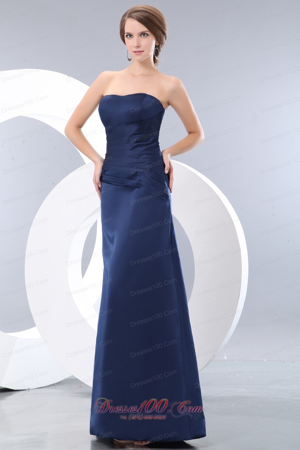 Navy Blue Strapless Ruch Bridesmaid Dress Column