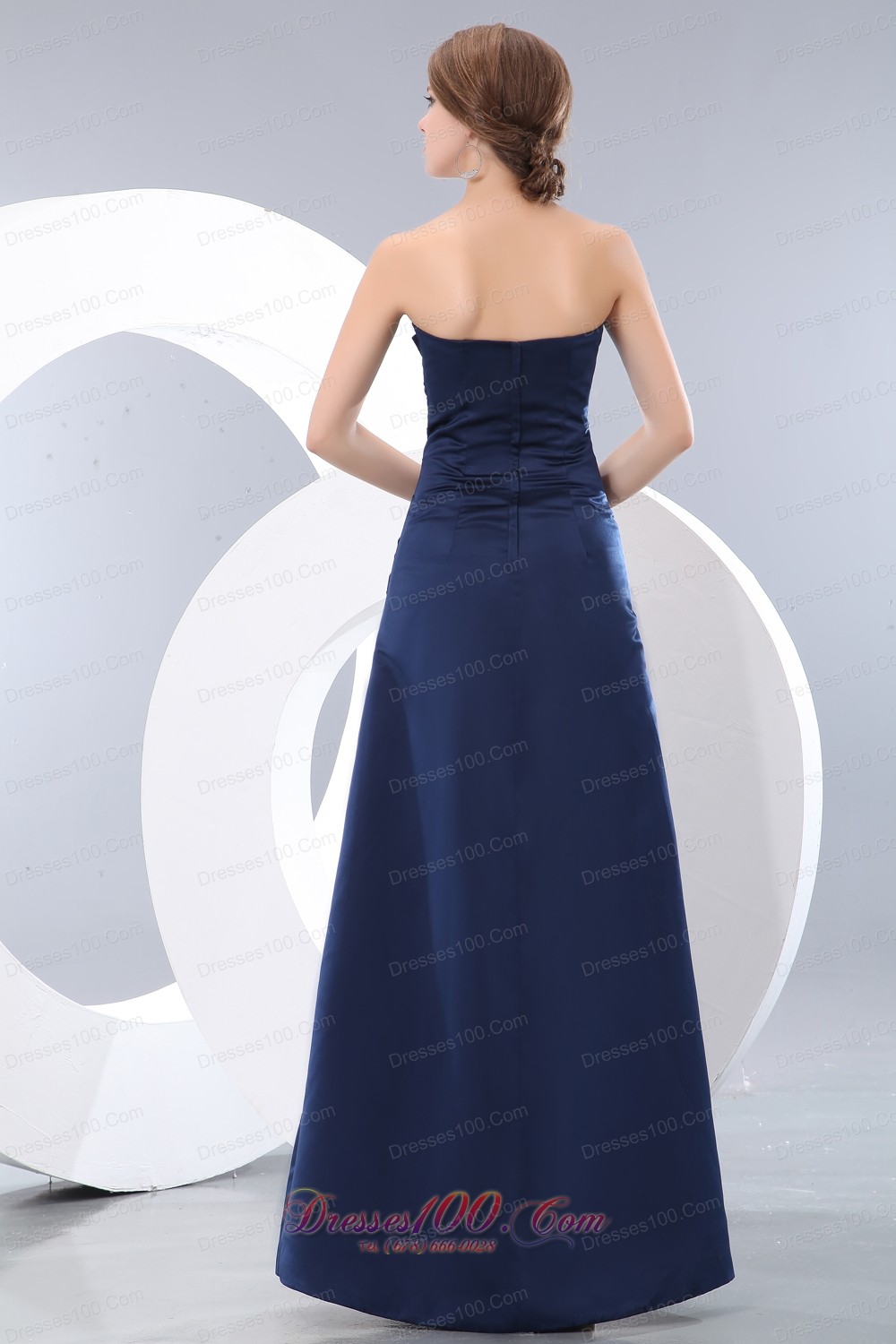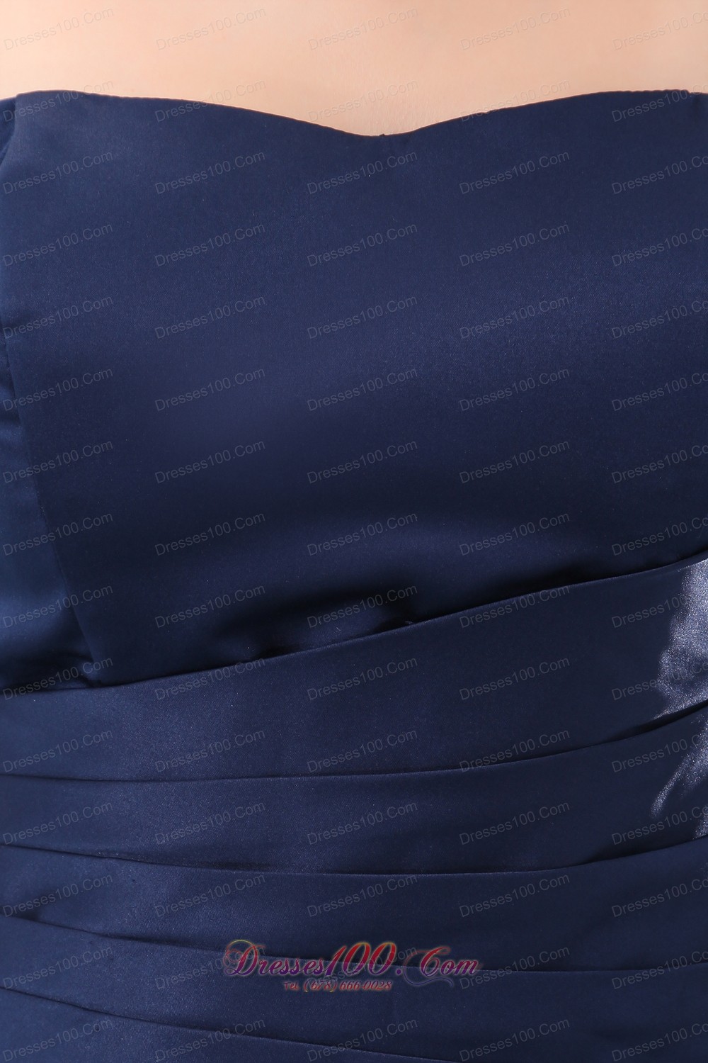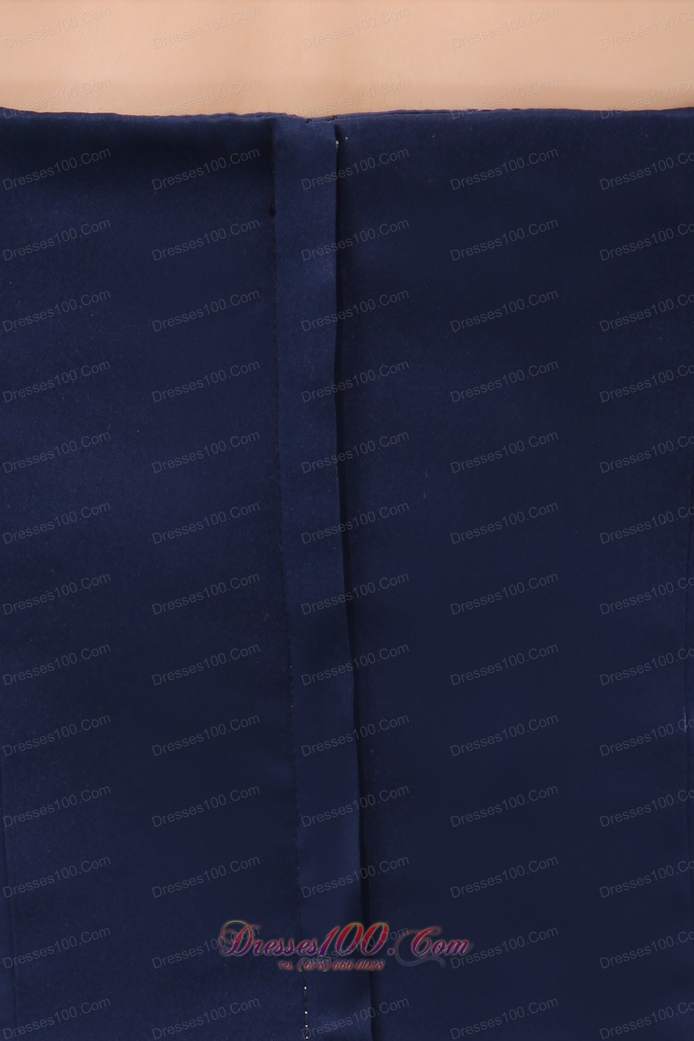 Navy Blue Strapless Ruch Bridesmaid Dress Column