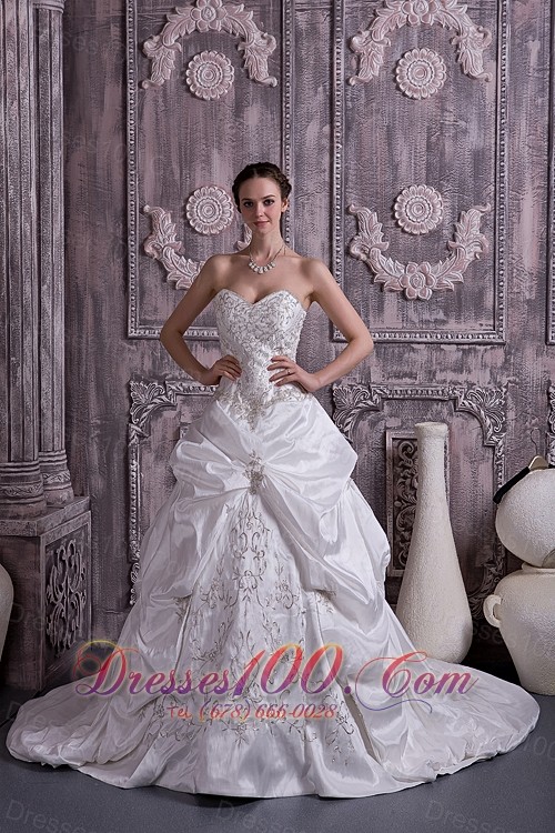 Sweetheart Taffeta Embroidery With Beading Wedding Gown