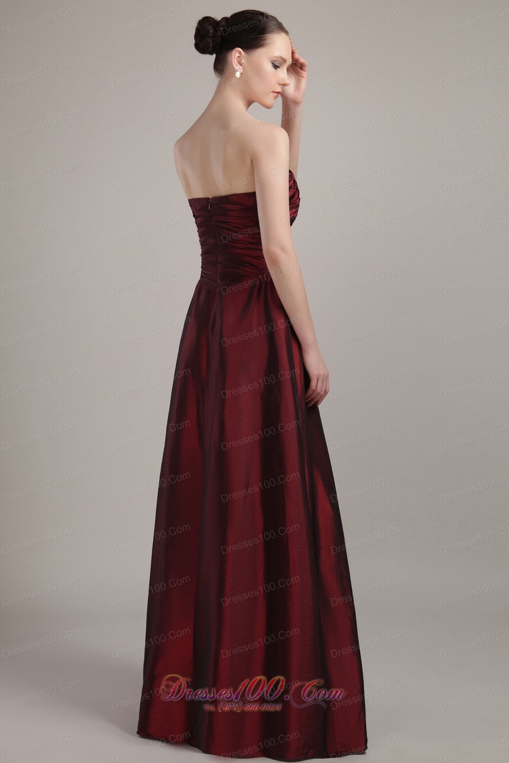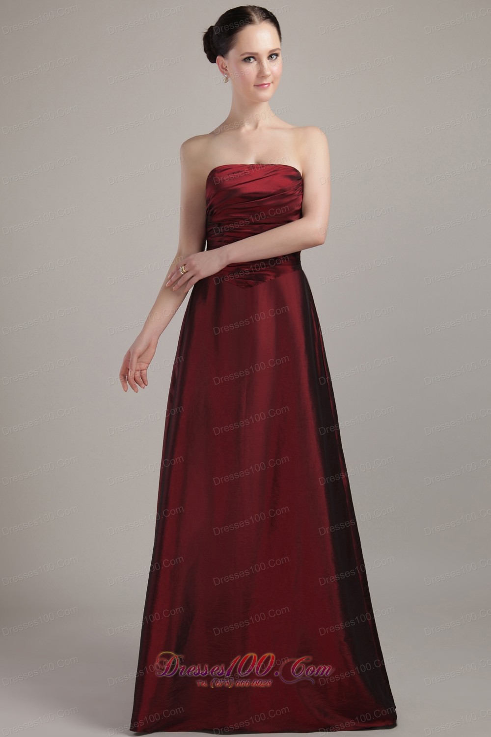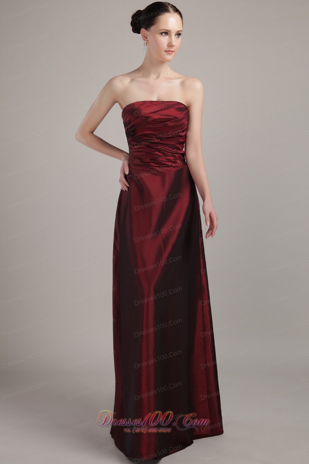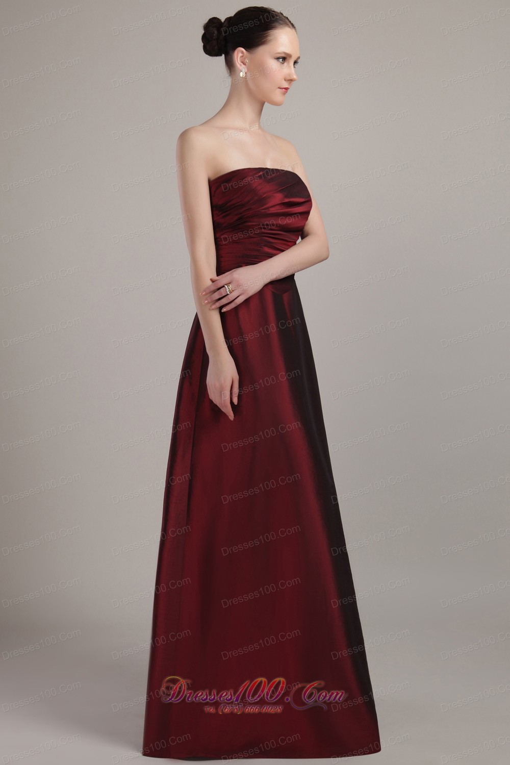 Burgundy Empire Bridesmaid Maxi Dress Ruch Strapless