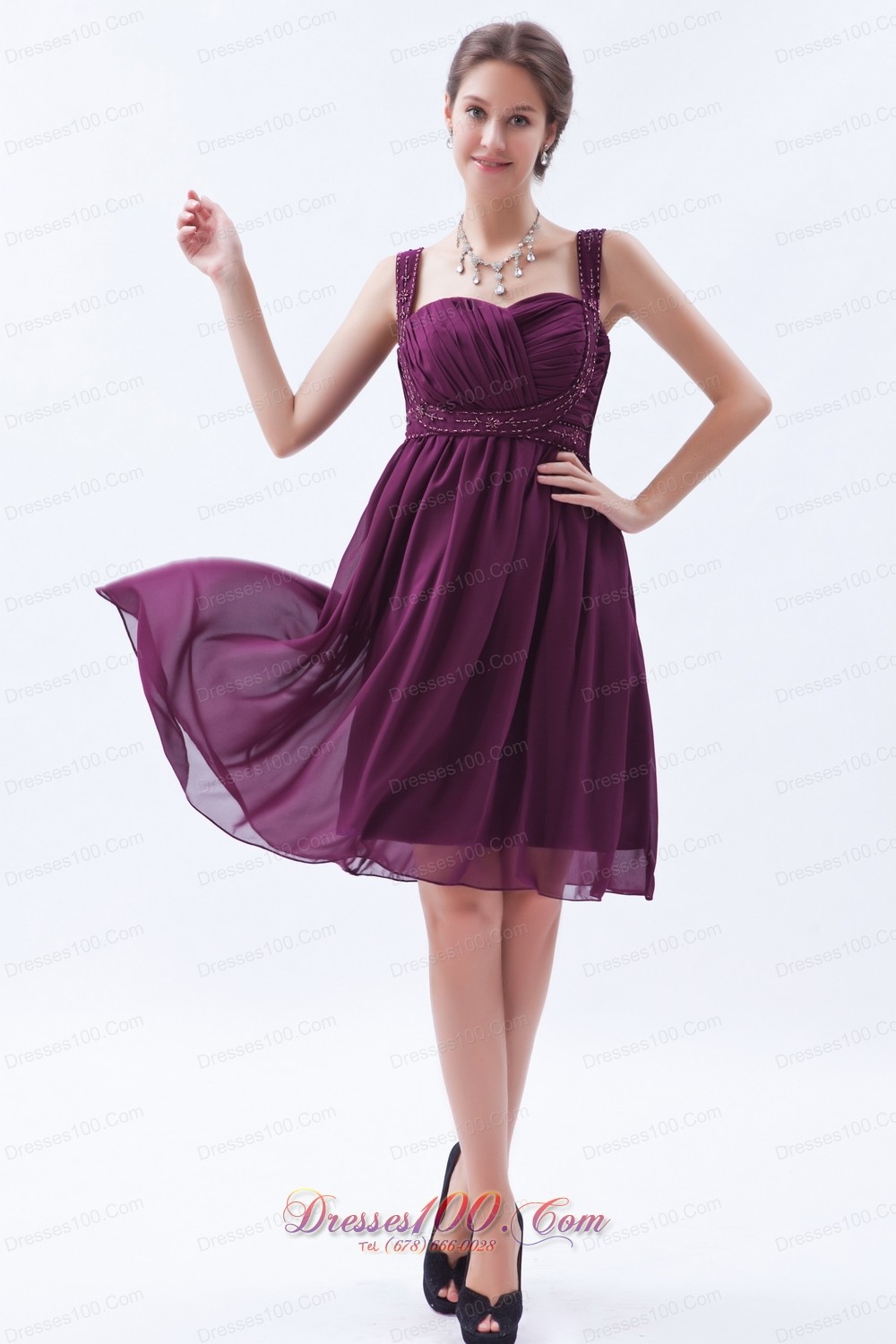 Grape Purple Empire Straps Prom Dress Knee-length Beaded