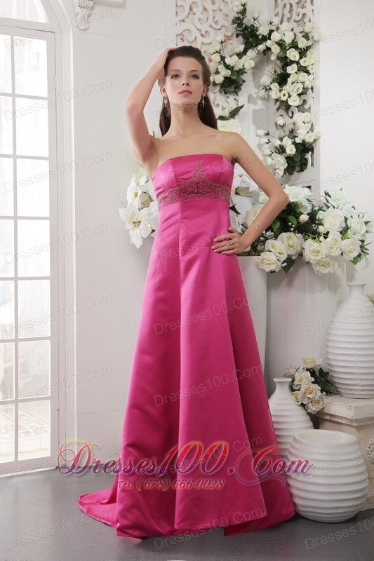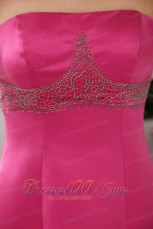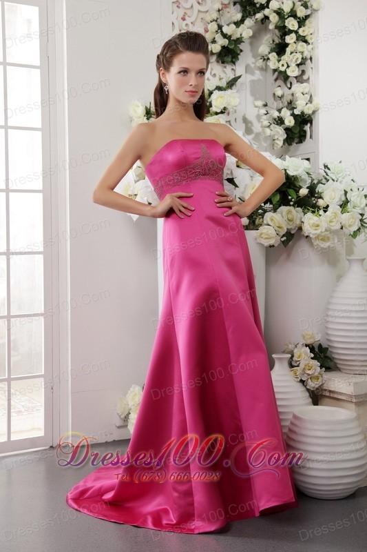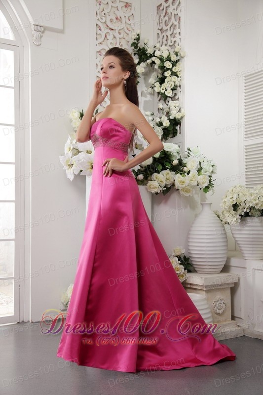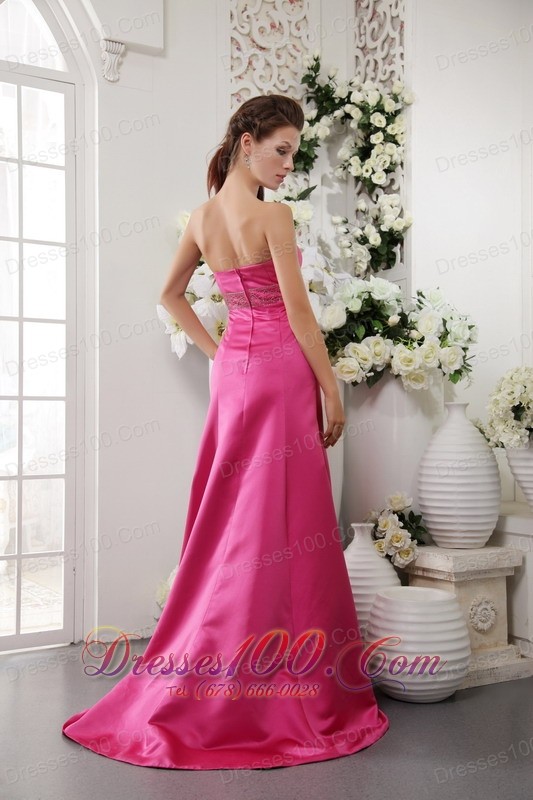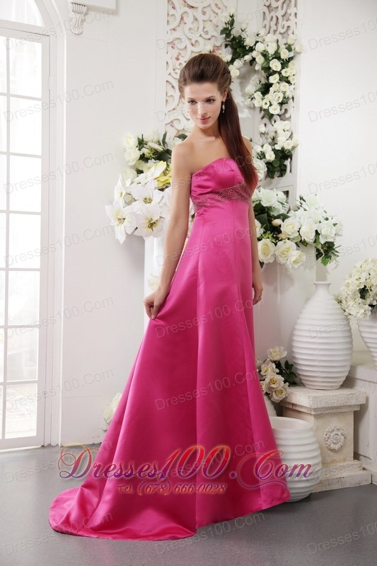 Brush Train Hot Pink Beading Junior Bridesmaid Dress