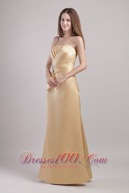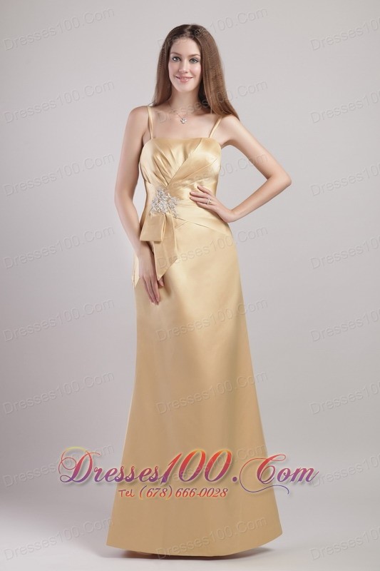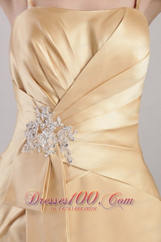 Spaghetti Straps Champagne Bridesmaid Dress Appliques